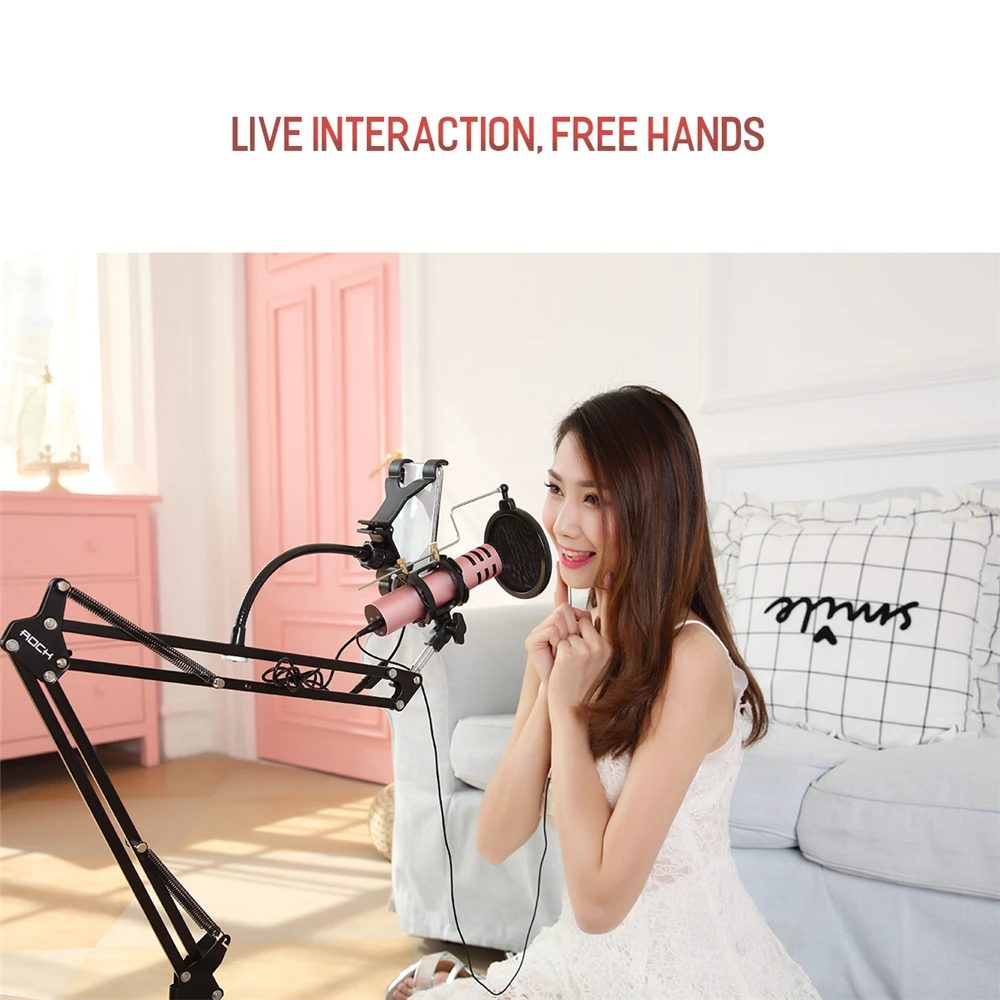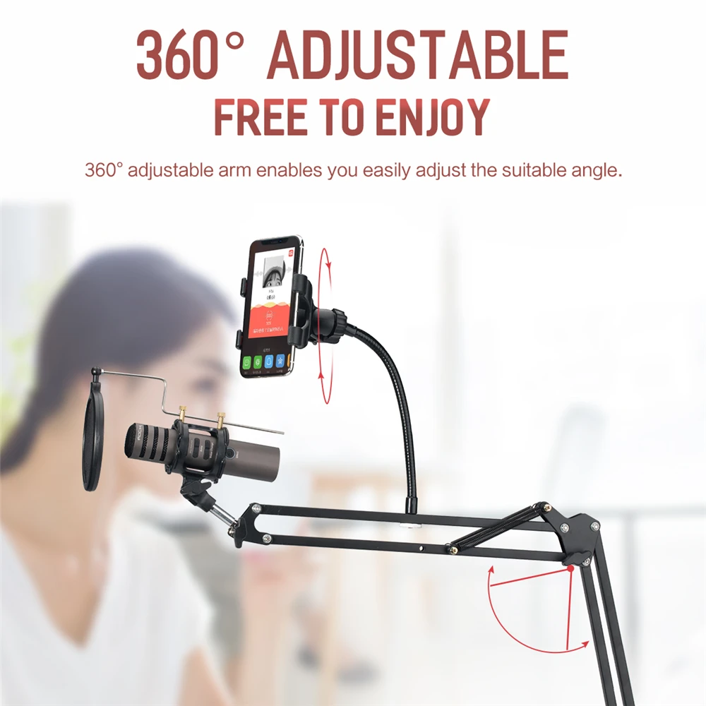 ROCK 2 in 1 Stand Holder Mount for Microphone & Phone 360 Degree for 3-6 inch Smartphone Adjustable Recording Microphone Clip