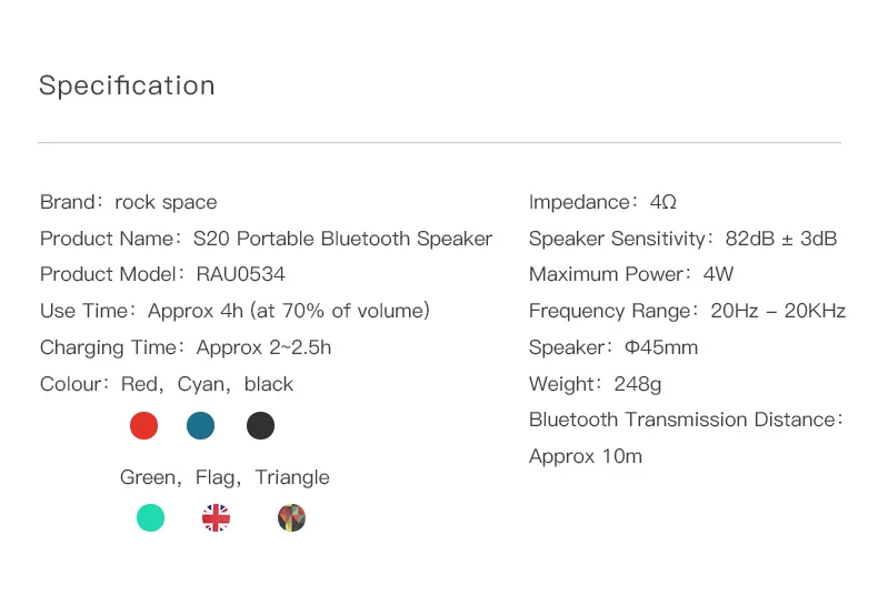 Rockspace S20 IPX4 Bluetooth Speaker Waterproof Ball Portable Bag Red Wireless Mini Speaker Party Outdoor Music with TF Support