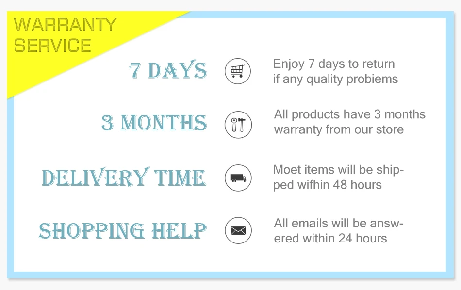 • If you did not receive the product within the guaranteed time( 45 days not including 2-5 day processing) you can request a refund or a reshipment.