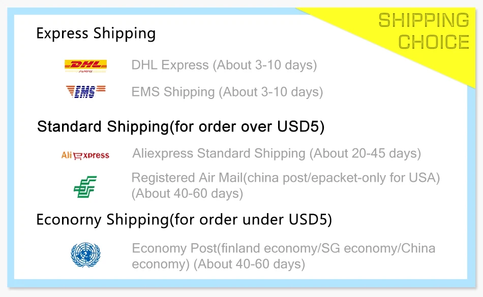 Packages from our warehouse in China will be shipped by ePacket or EMS depending on the weight and size of the product. Packages shipped from our US warehouse are shipped through USPS.