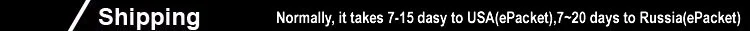 2.In general,Ressia 7-20 days via ePackage, USA 7-15 days via ePacket, Other country 10~30 days. you can