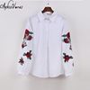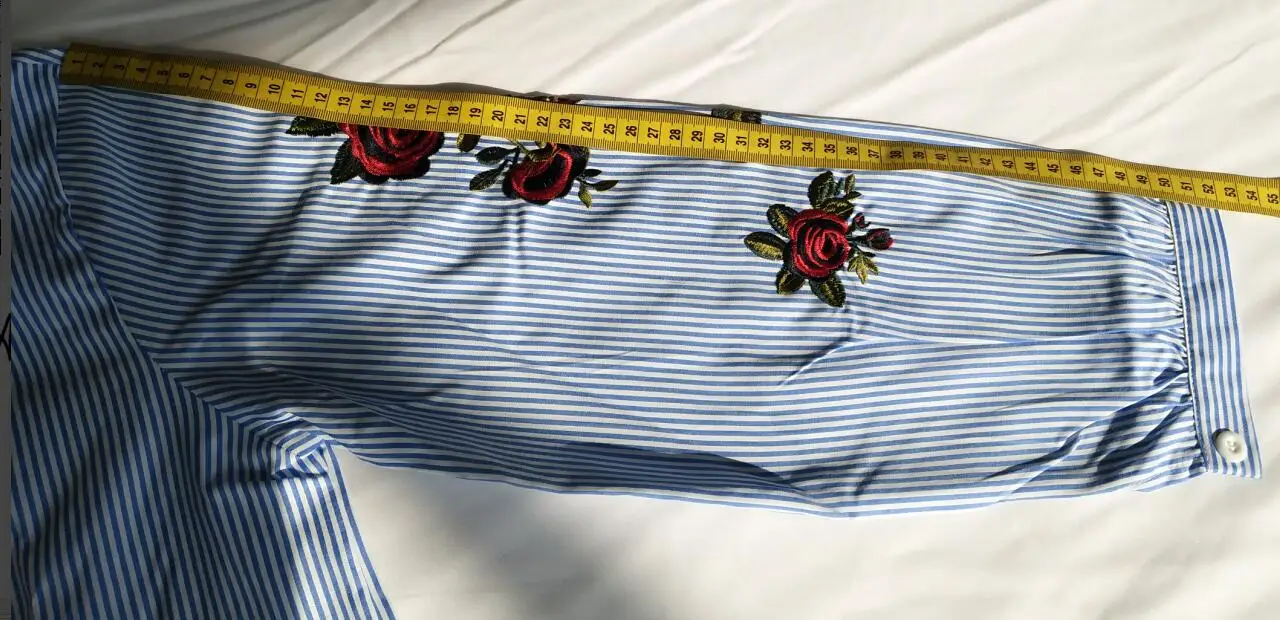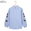 Rose Floral Embroidery Striped Blouse Women Long Sleeve Shirt Casual Cotton Blusa Plus Size kimono Tops Office Lady Blusas 2018