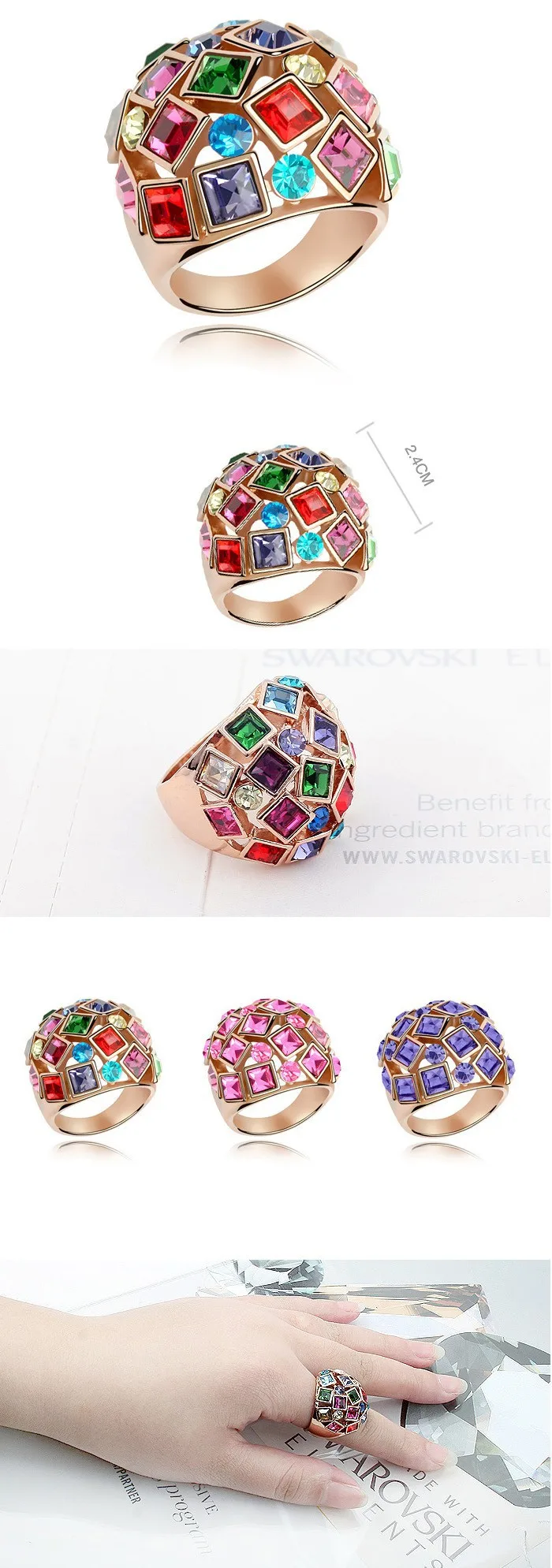 Rose Gold Color Exclusive Engagement Ring With Multicolor Austrian Crystals from Swarovski Fine Jewelry Anillos Bijouterie
