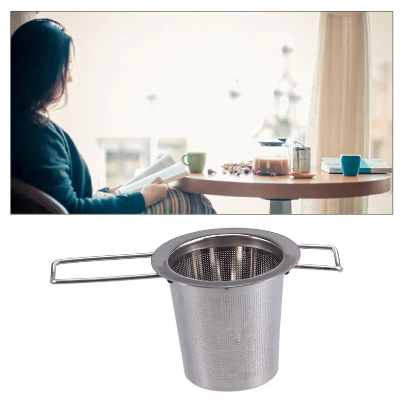1 x Stainless Steel Tea Infuser Tea Strainer with Foldable Double Handles for Hanging on Teapots Mugs Cups