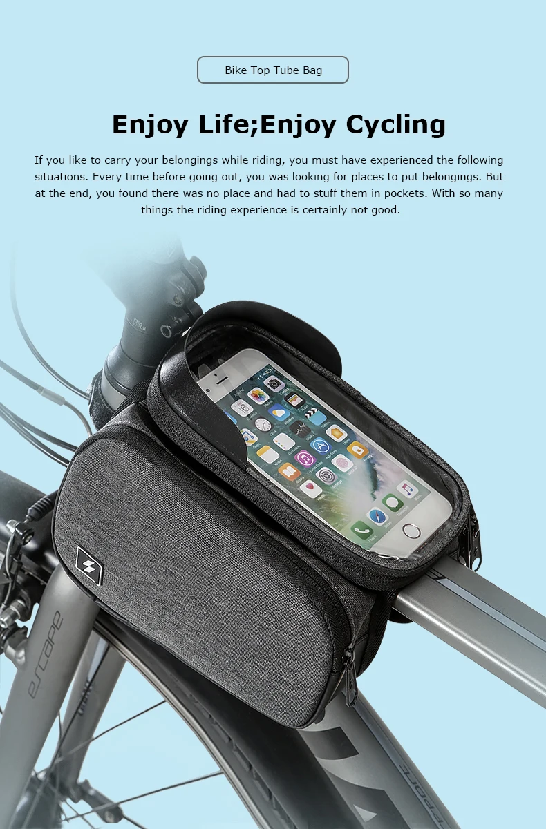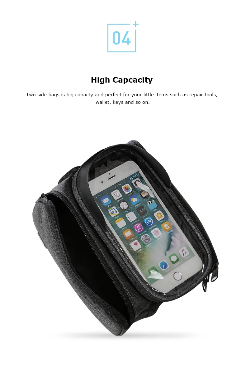 This bike top tube phone holder is designed for convenient and easy use during riding, it provides a safe room for your phone, tools, purse and such little items so that you can ride freely.