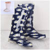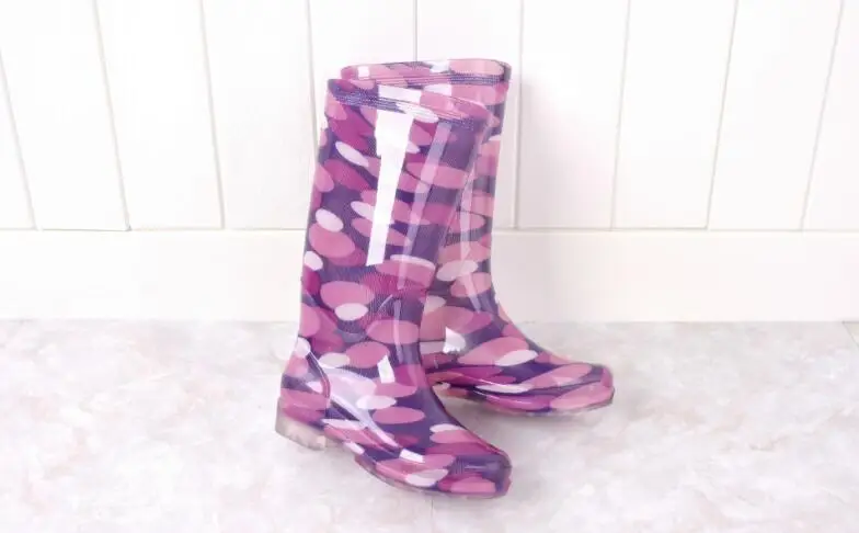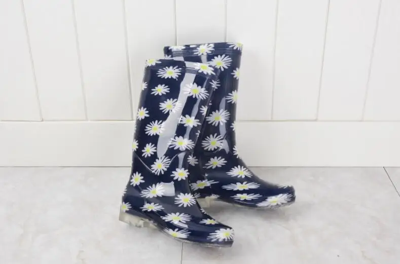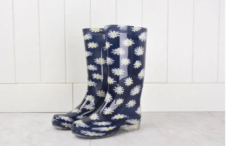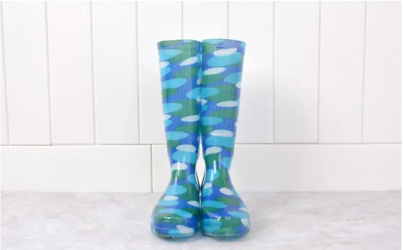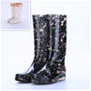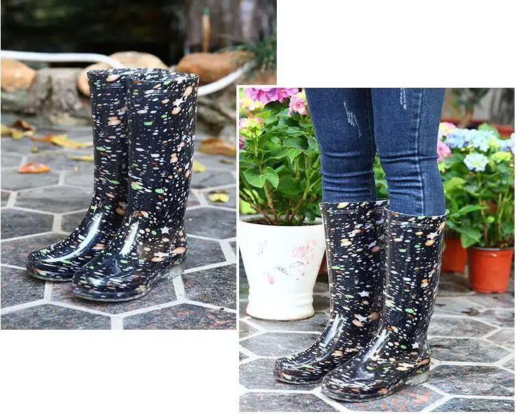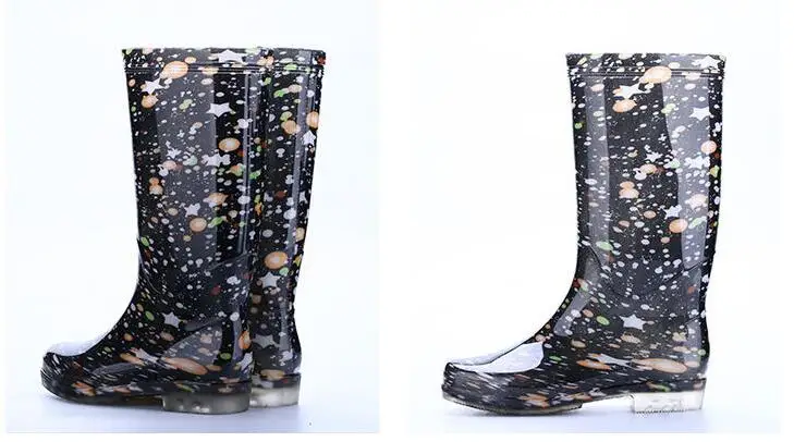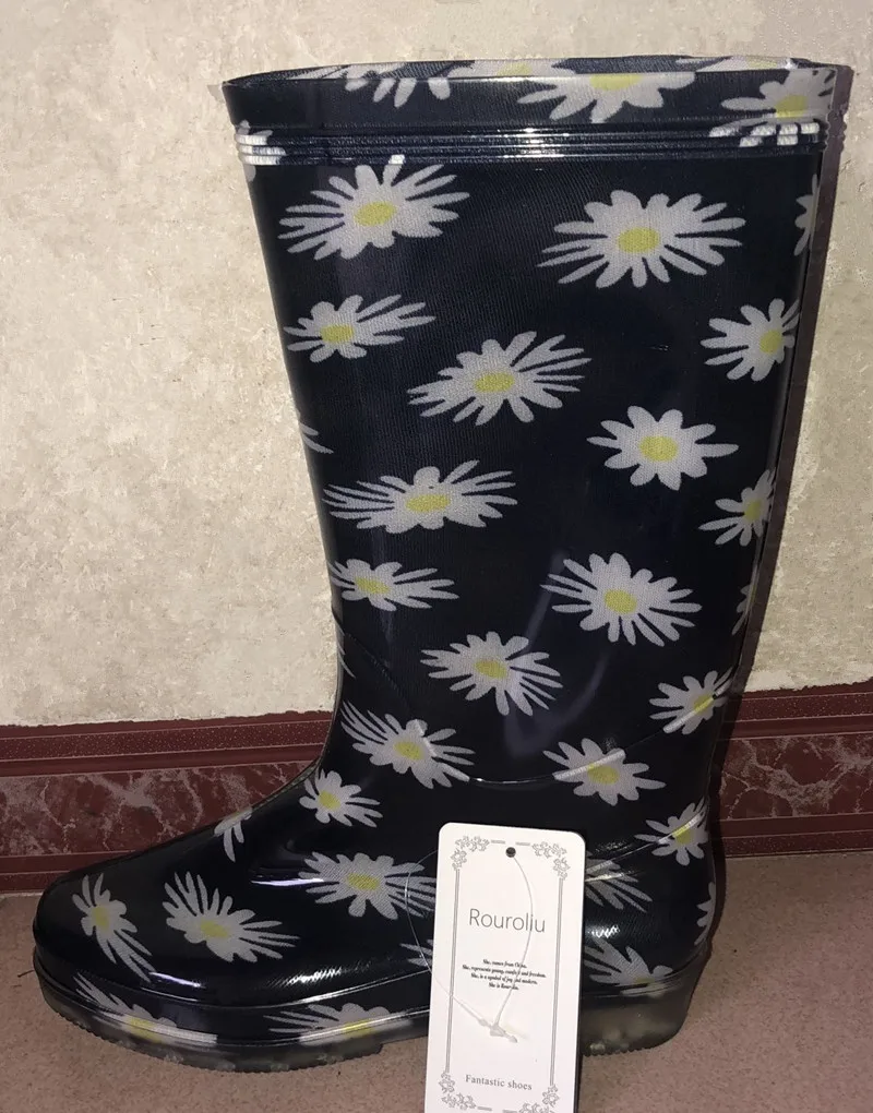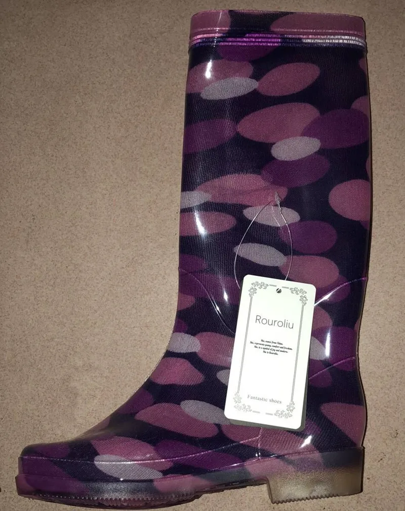 Rouroliu Women Flat Heels Knee-High Rainboots Fashion PVC Waterproof Water Shoes Wellies Anti-Slip Warm Rain Boots Woman RT347
