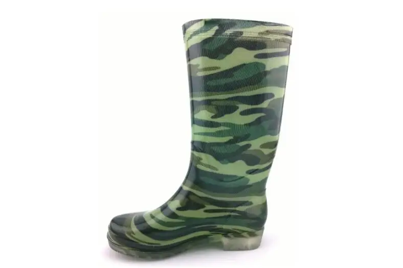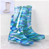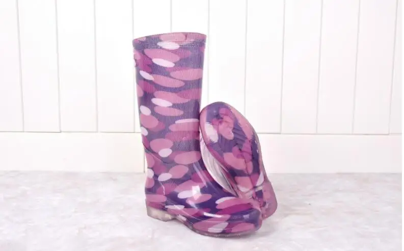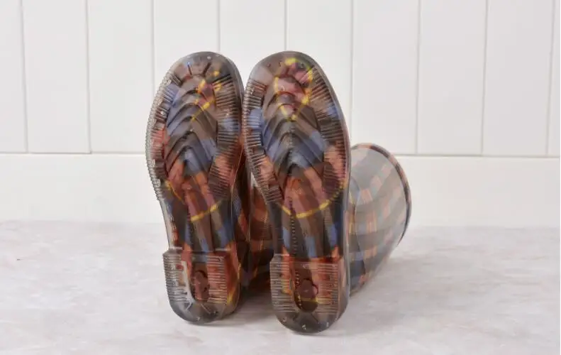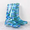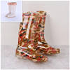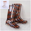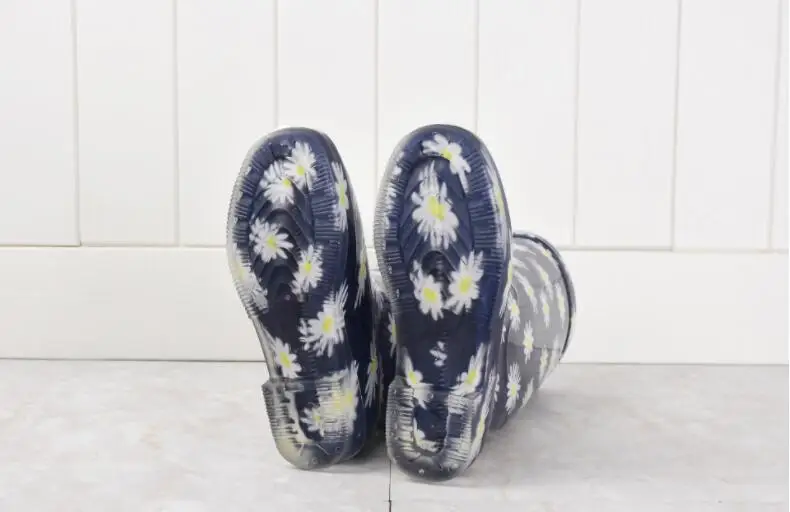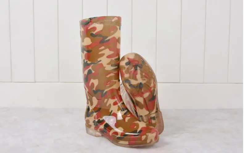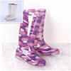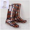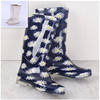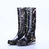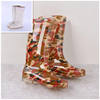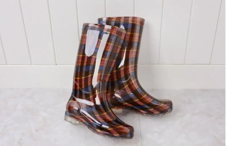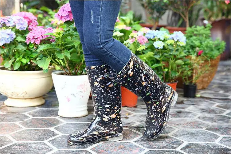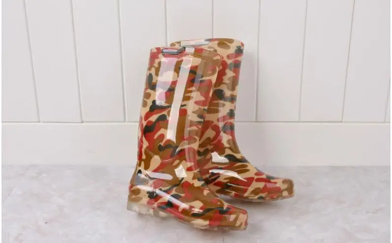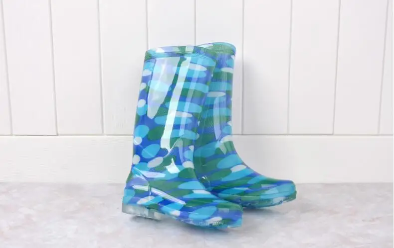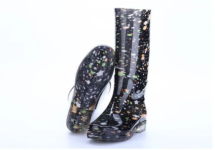 Rouroliu Women Flat Heels Knee-High Rainboots Fashion PVC Waterproof Water Shoes Wellies Anti-Slip Warm Rain Boots Woman RT347