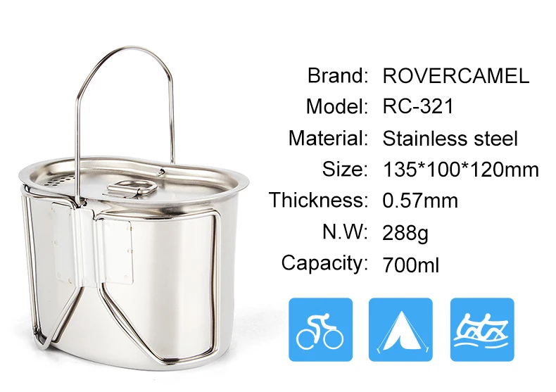 Rover Camel Outdoor 304 Stainless Steel Army Edition Cup Lunch box with Hanging and Wood stoves