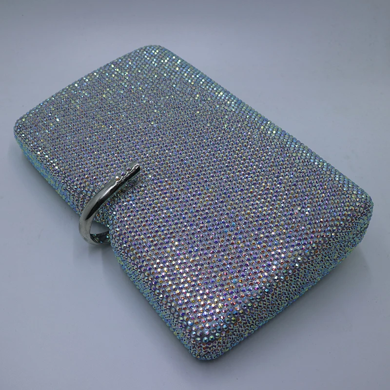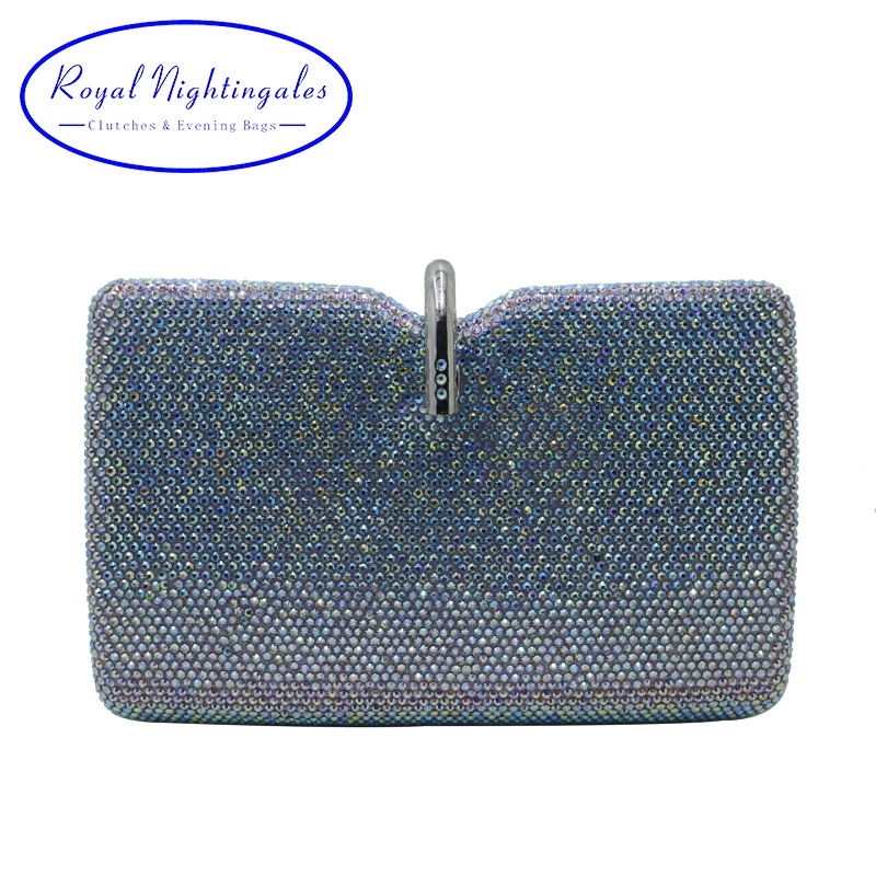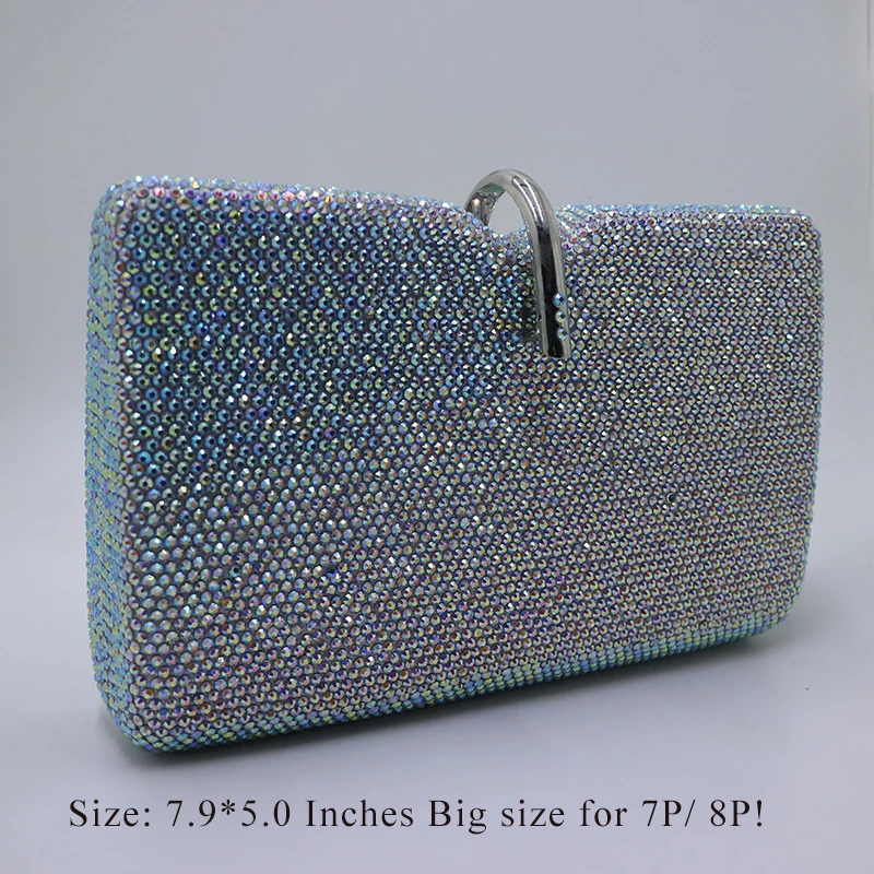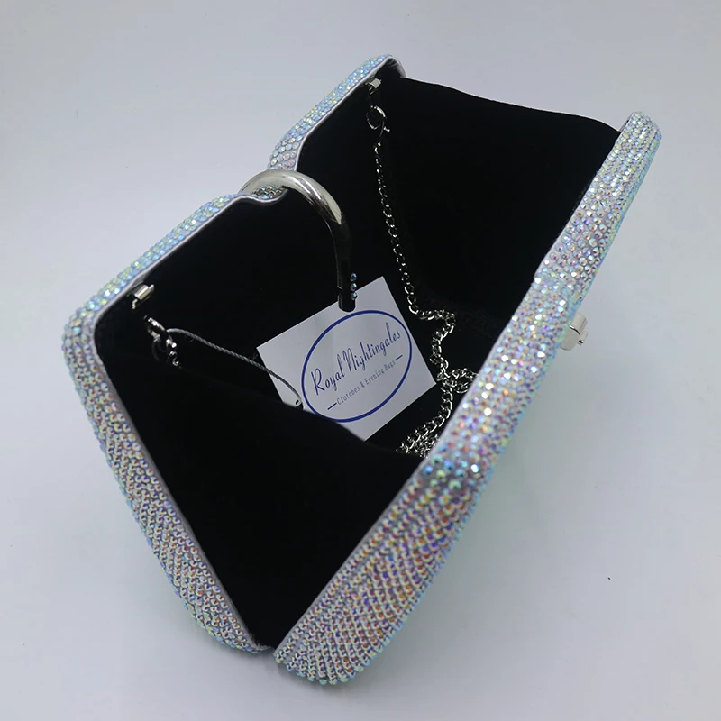 Royal Nightingales Large AB Silver White Crystals Clutches Evening Bags and Handbags for Womens Wedding Prom Evening Party