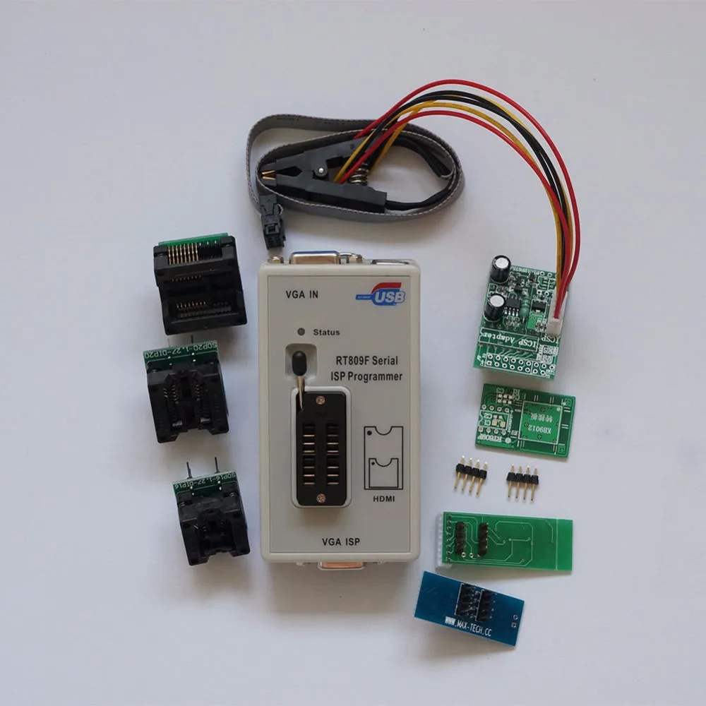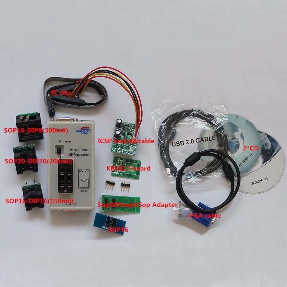 RT809F USB PC Repair Tools Programmer +7 Adapters+SOP16 SOP20 IC Clip LCD Reader LCD BIOS ISP/ USB/ VGA