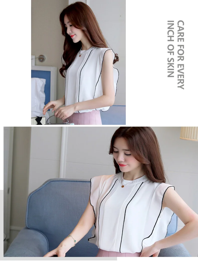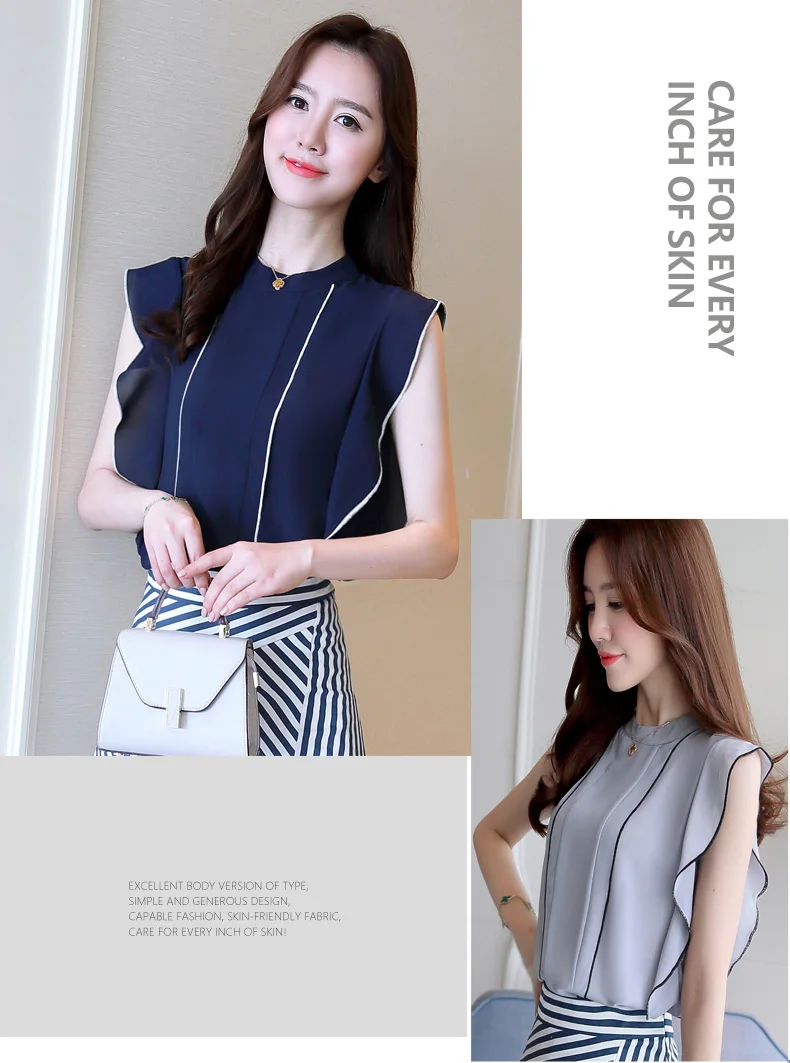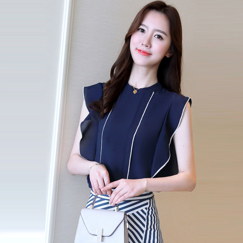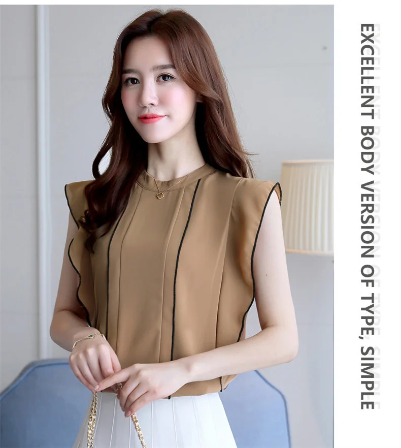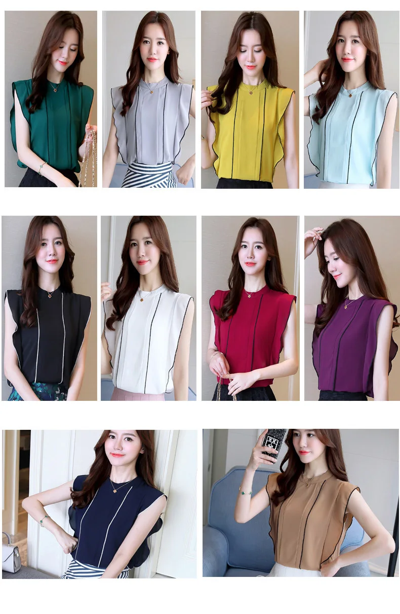 Product Name : Ruffle Womens Tops And Blouses Summer 2018 New Arrival Chiffon Blouse Sleeveless Elegant Fashion Casual Shirt Women Clothing