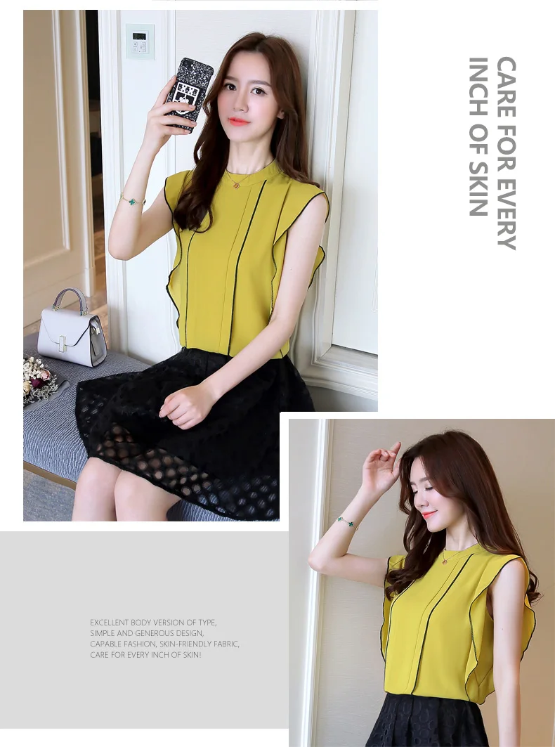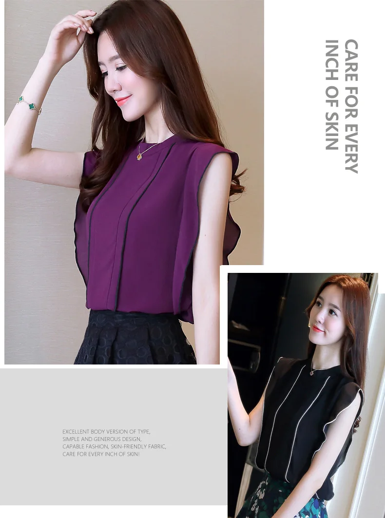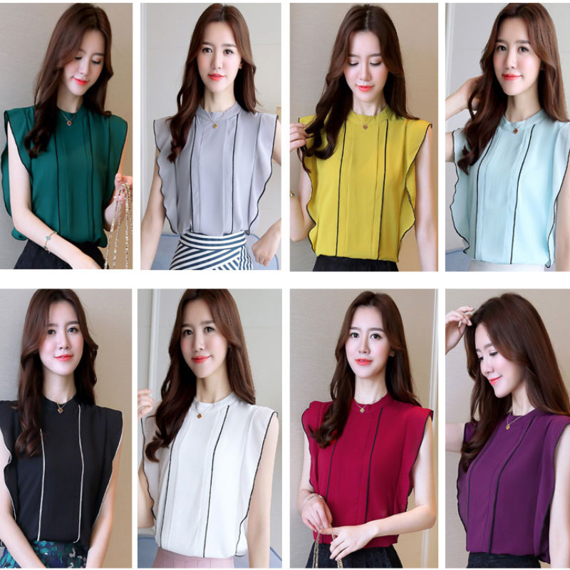 | Design Feature | Sleeveless Ruffle Chiffon Blouse | ||||||||