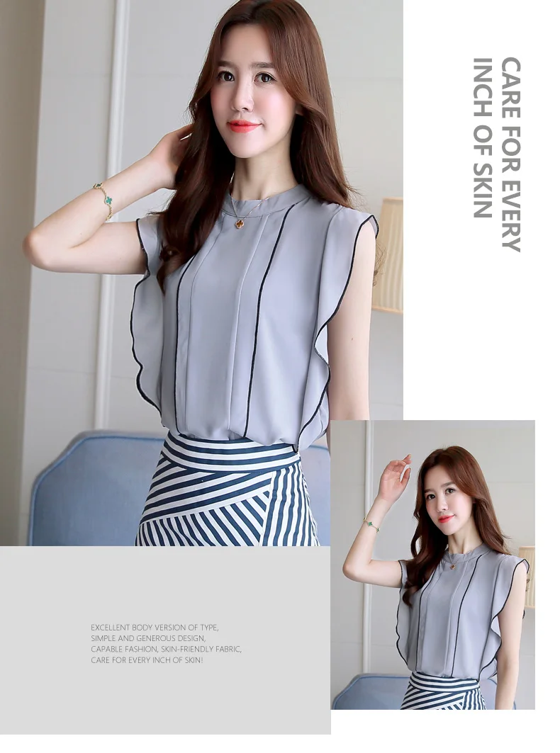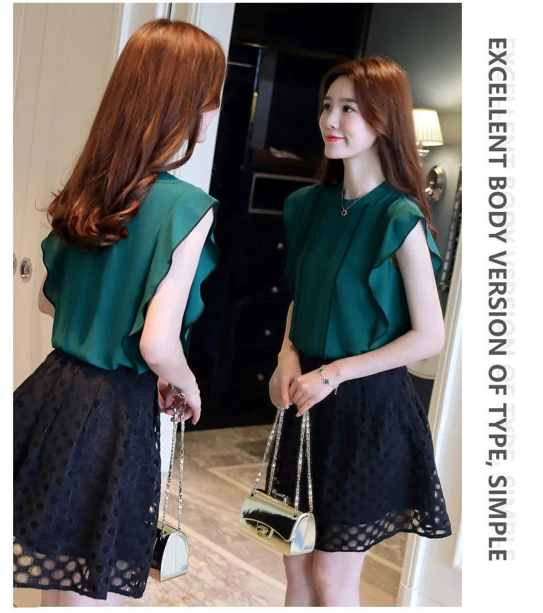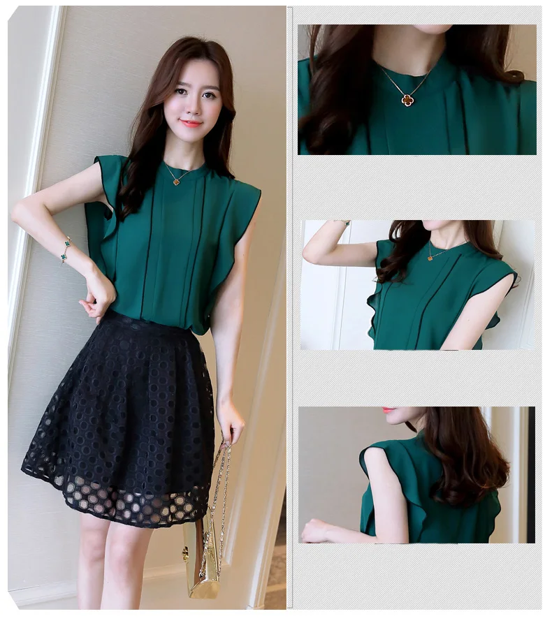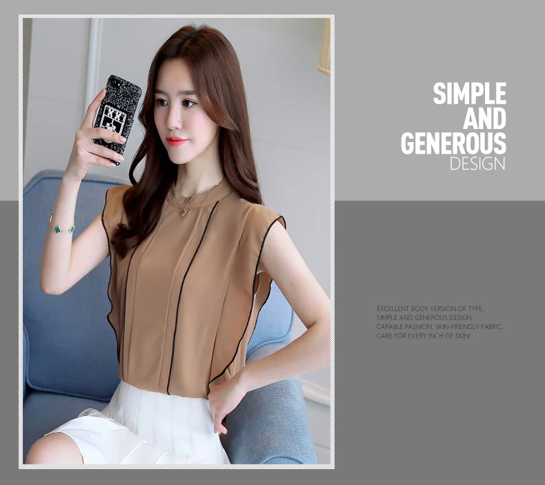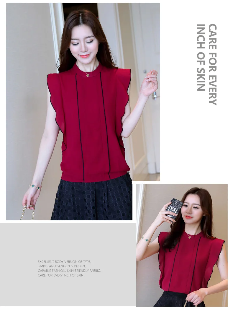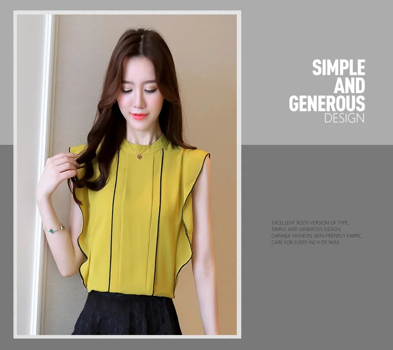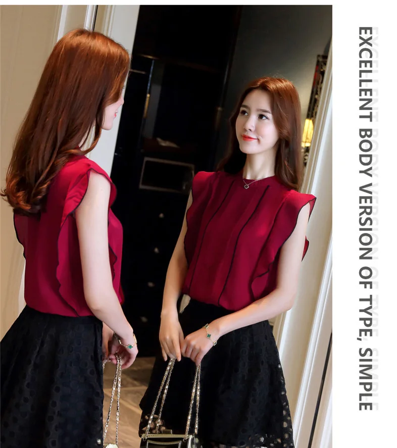 Product Name : Ruffle Womens Tops And Blouses Summer 2018 New Arrival Chiffon Blouse Sleeveless Elegant Fashion Casual Shirt Women Clothing