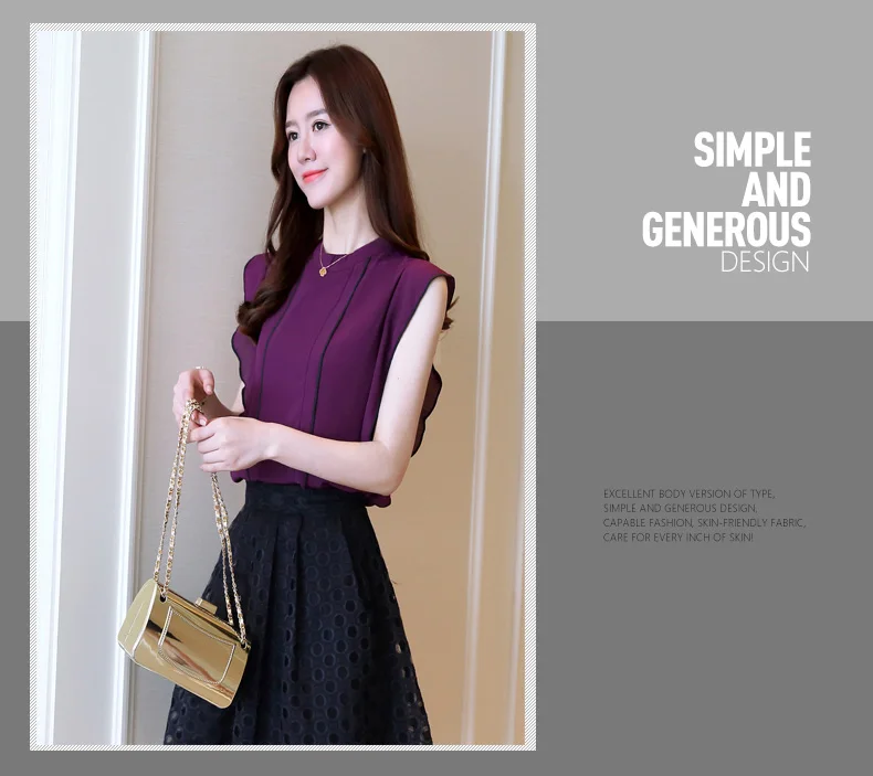 | Design Feature | Sleeveless Ruffle Chiffon Blouse | ||||||||