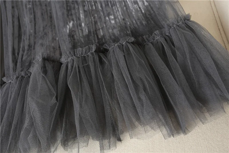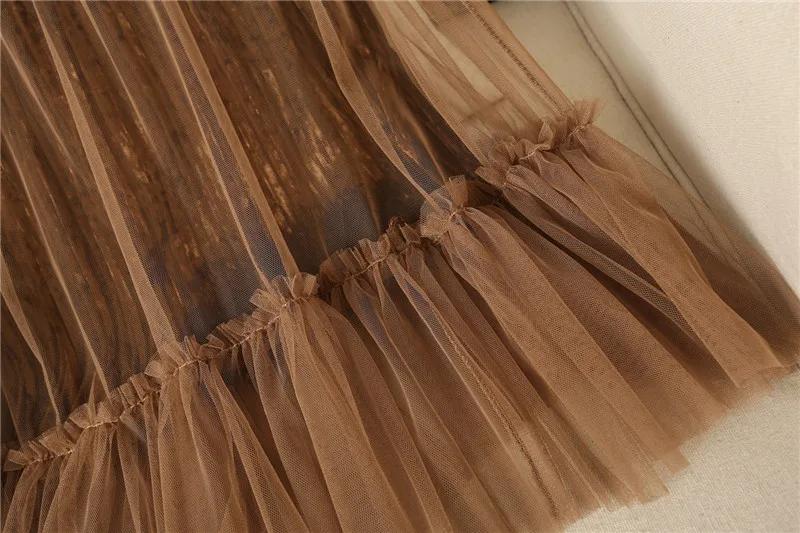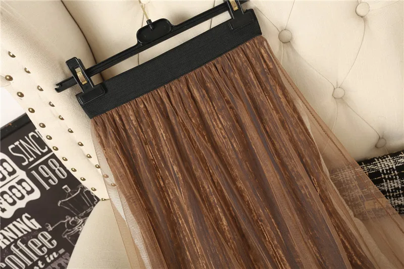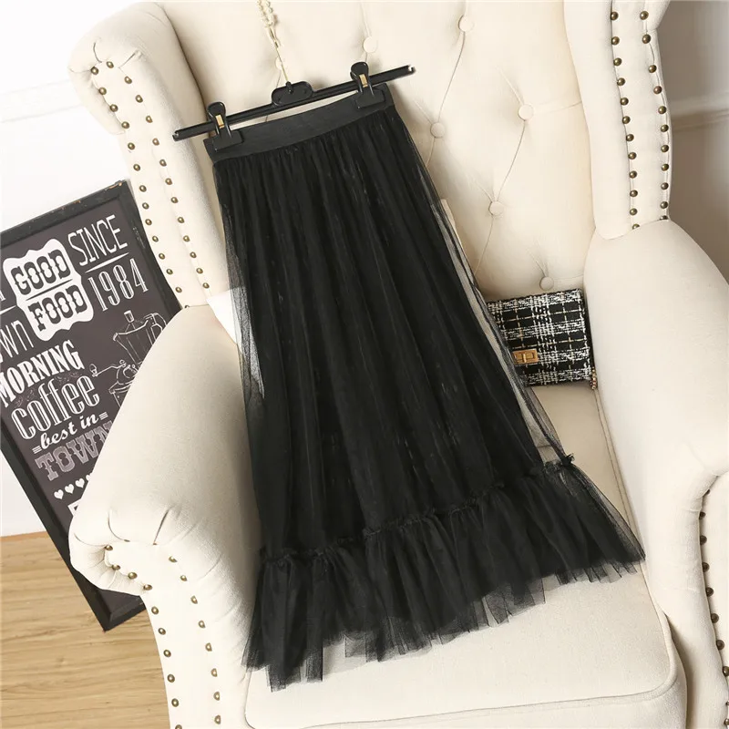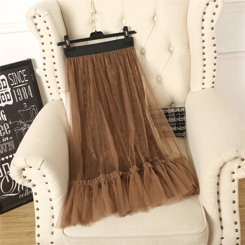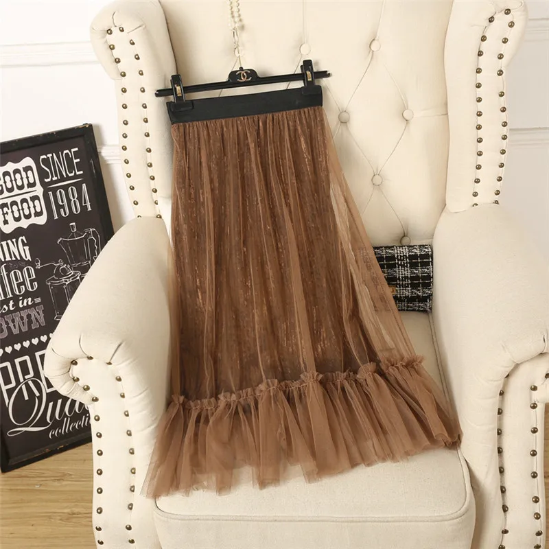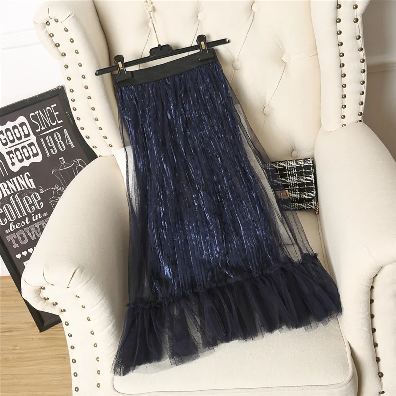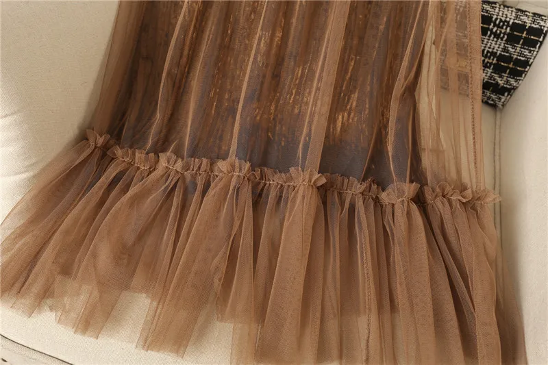 Ruffles guaze Gold velvet pleated medium long half slip double layer autumn and winter petticoat