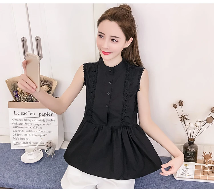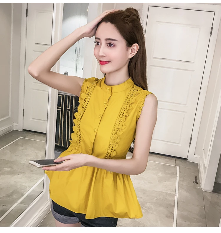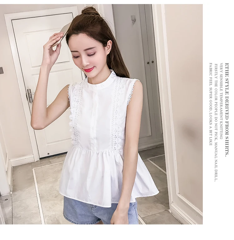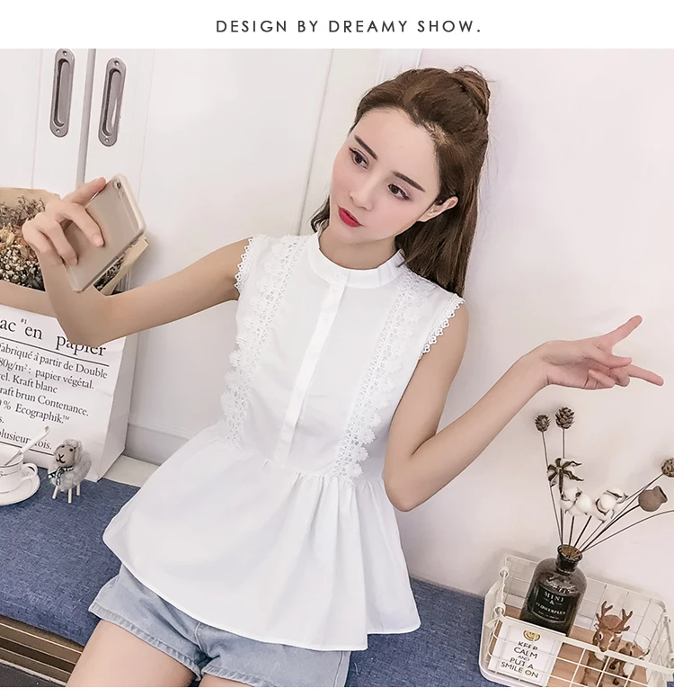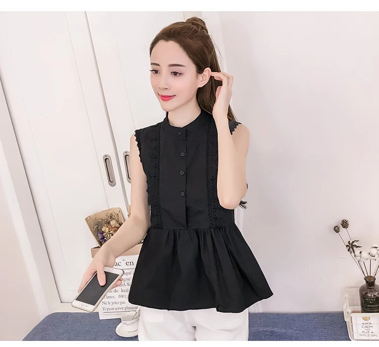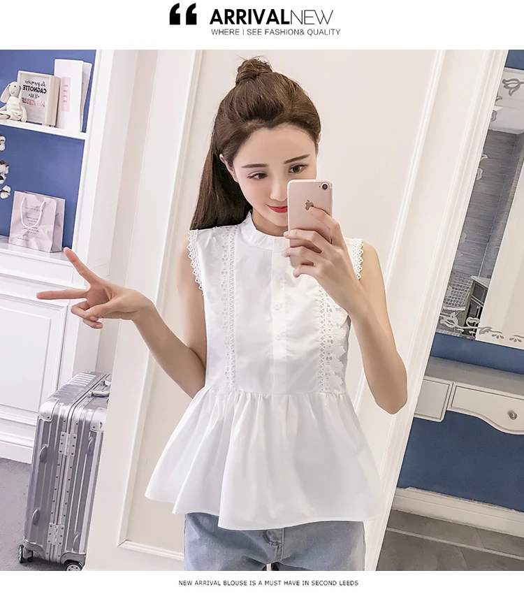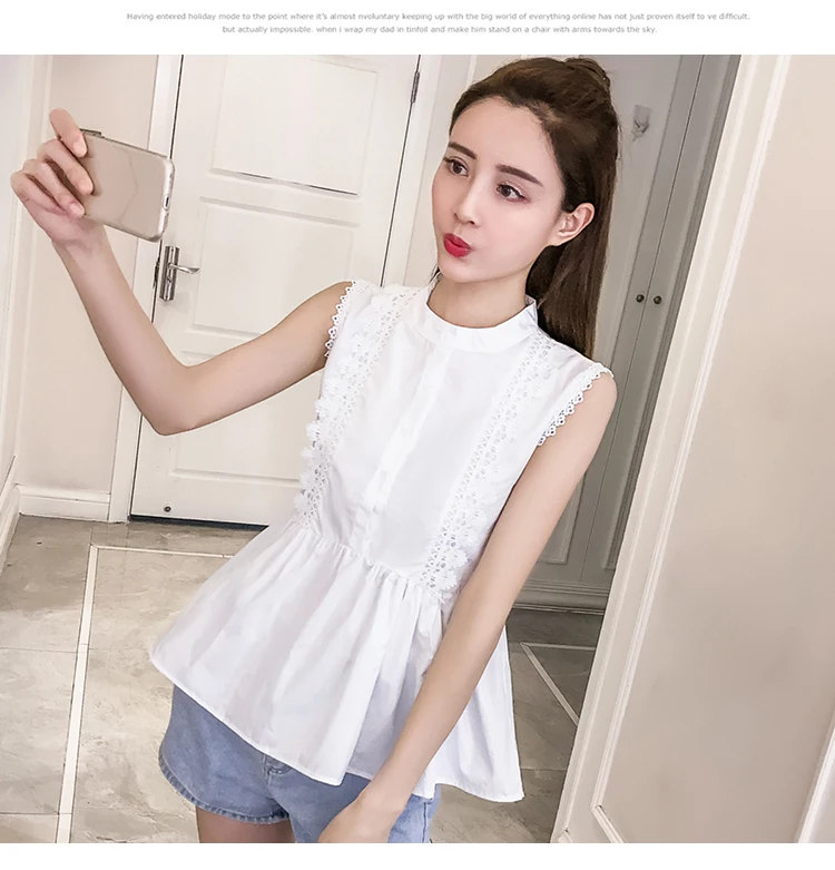 | Design Feature | Sleeveless O-neck Hollow Out Summer Women Blouses | ||||||||