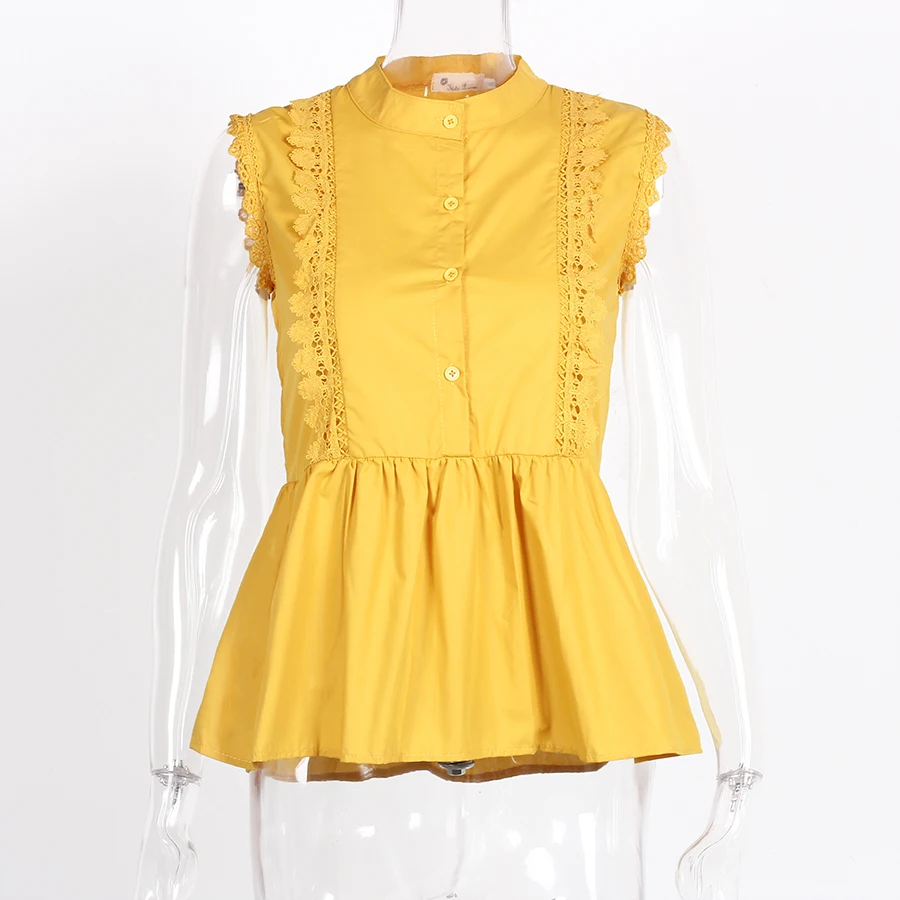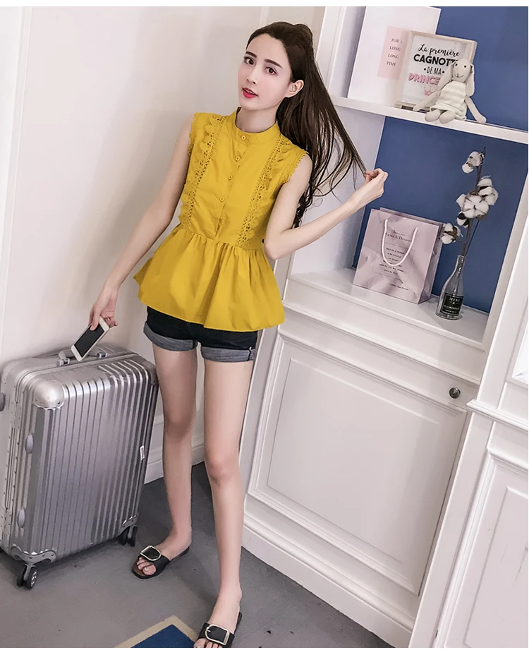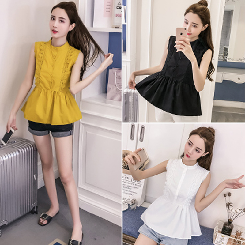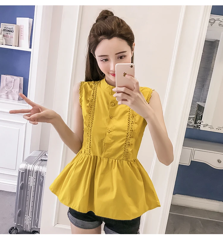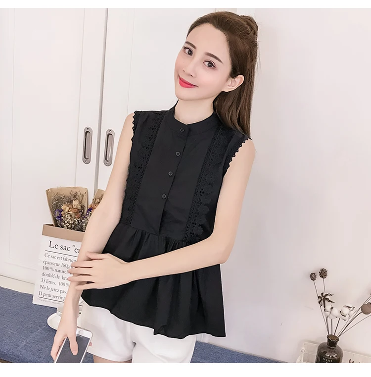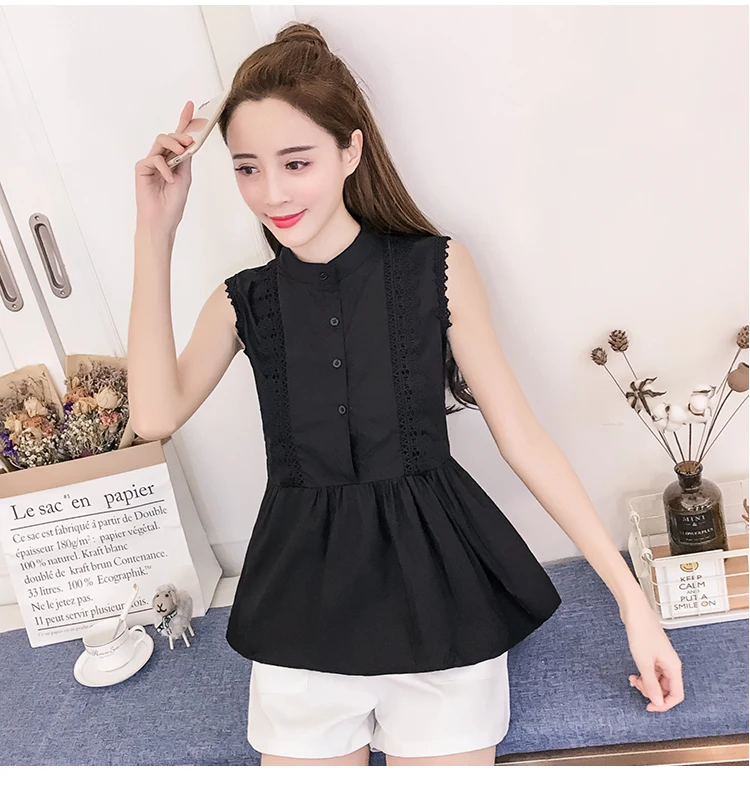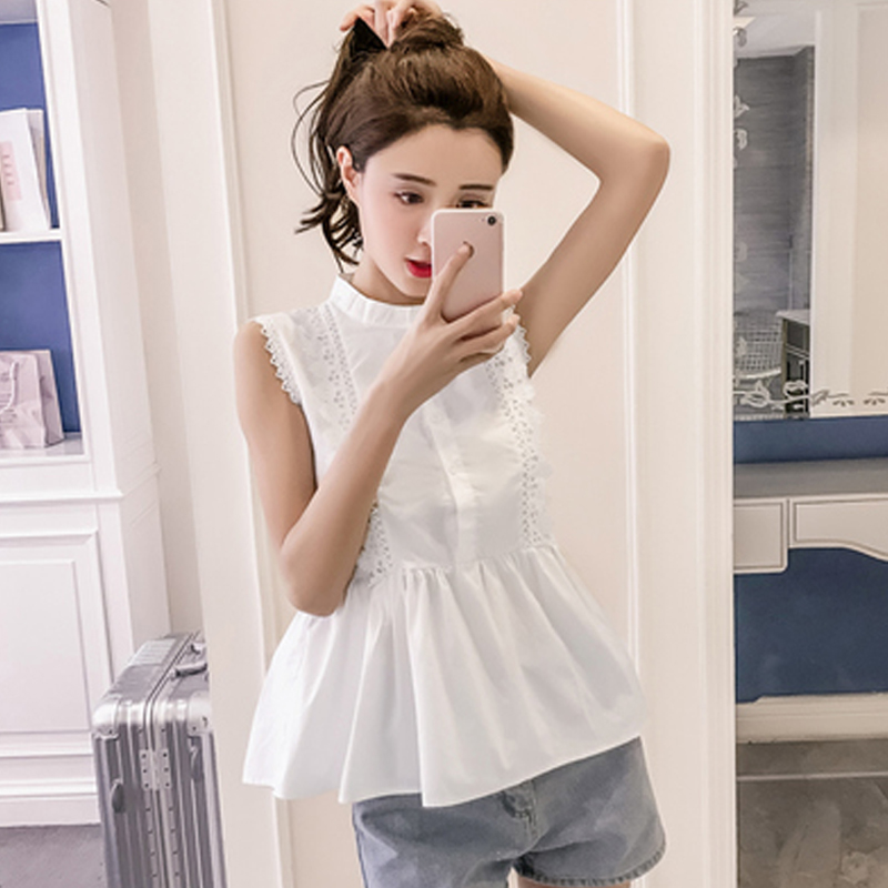 | Design Feature | Sleeveless O-neck Hollow Out Summer Women Blouses | ||||||||