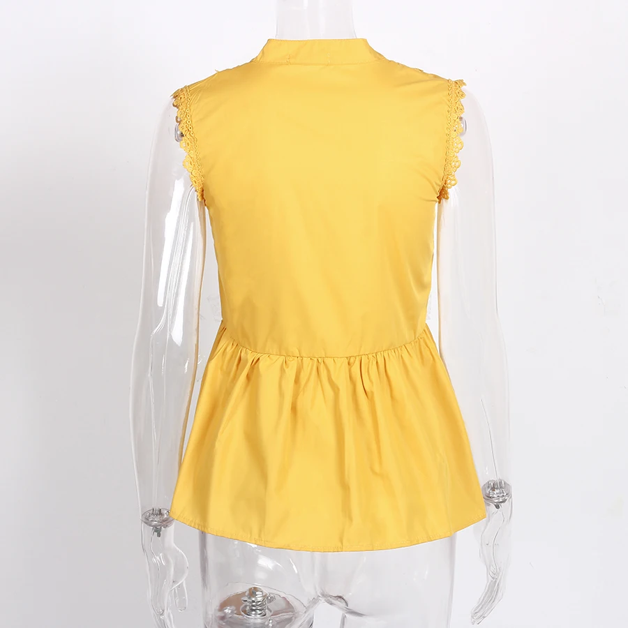 Product Name :Ruffles Summer Women Peplum tops 2018 New Fashion Elastic Waist Sleeveless Casual Tops Solid Turtleneck Tops For Women