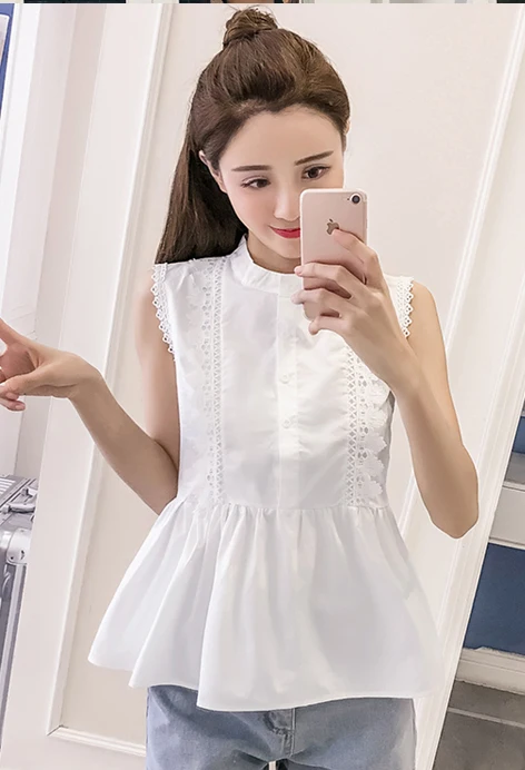 | Design Feature | Sleeveless O-neck Hollow Out Summer Women Blouses | ||||||||