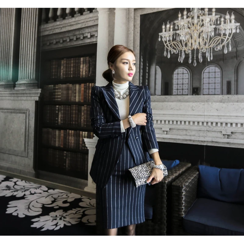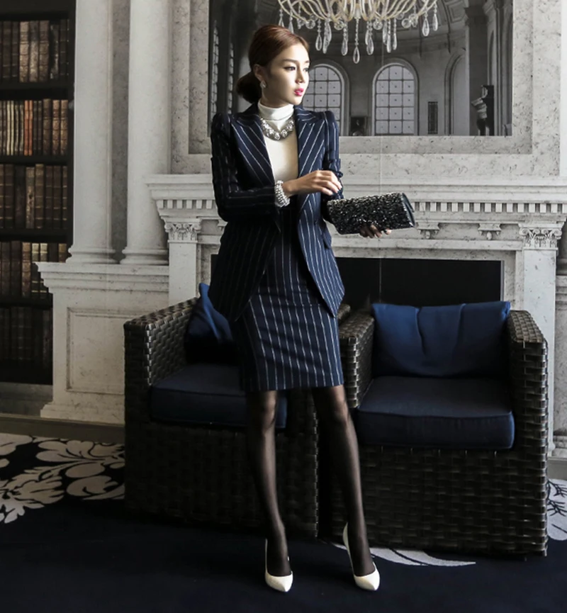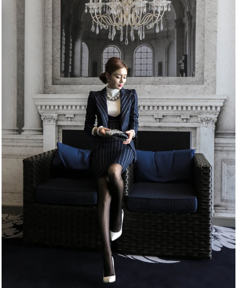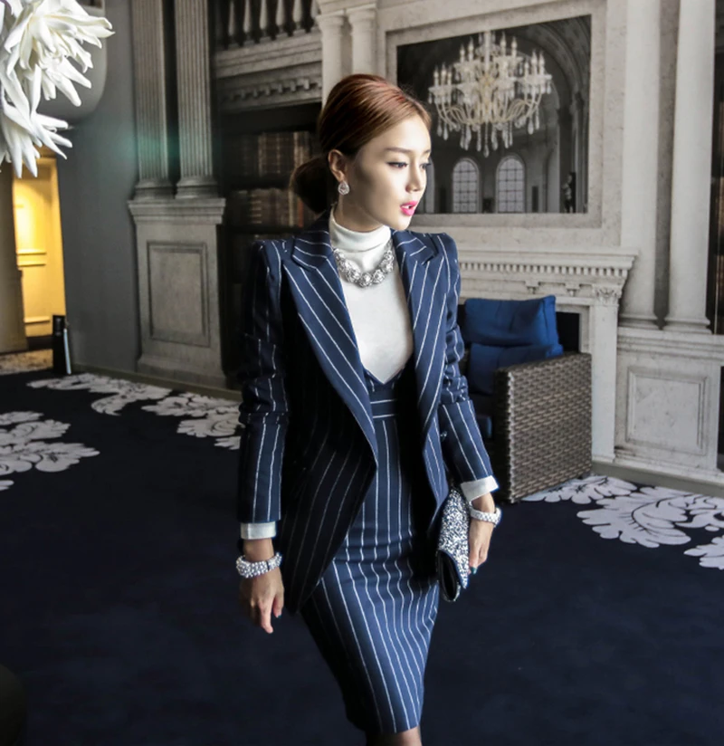 Rugod 2018 Autumn Suit Dress Office Women Jacket Blazer Dress Suits Female Long Sleeve Jacket+ Knee-Length Dress Office Clothes