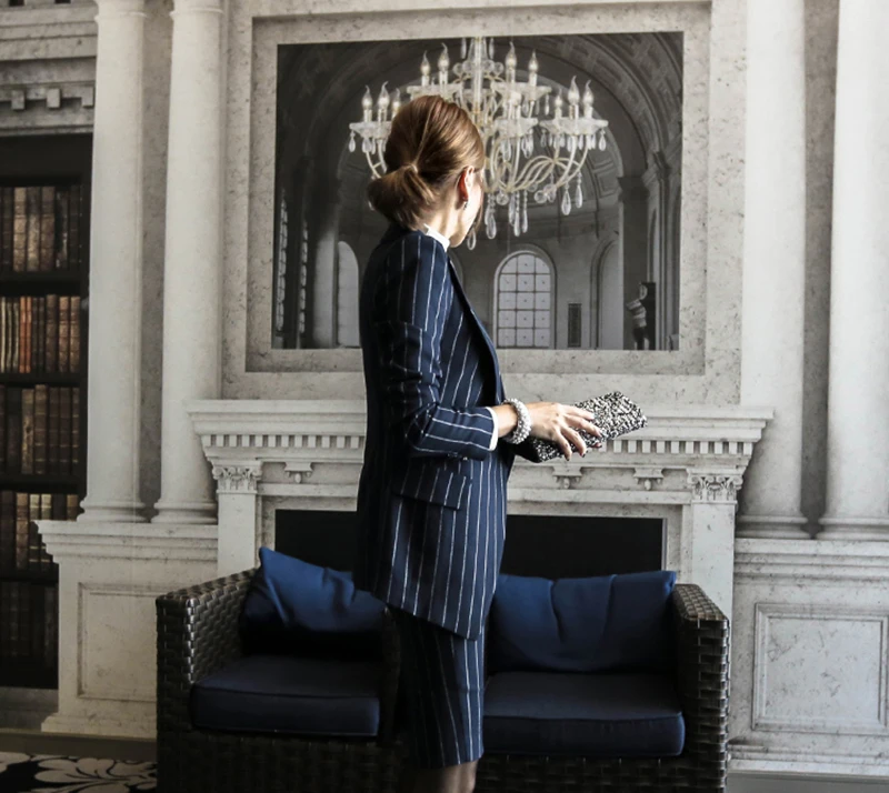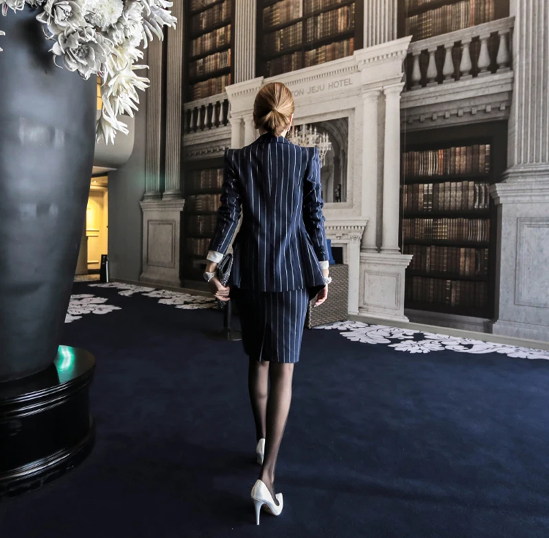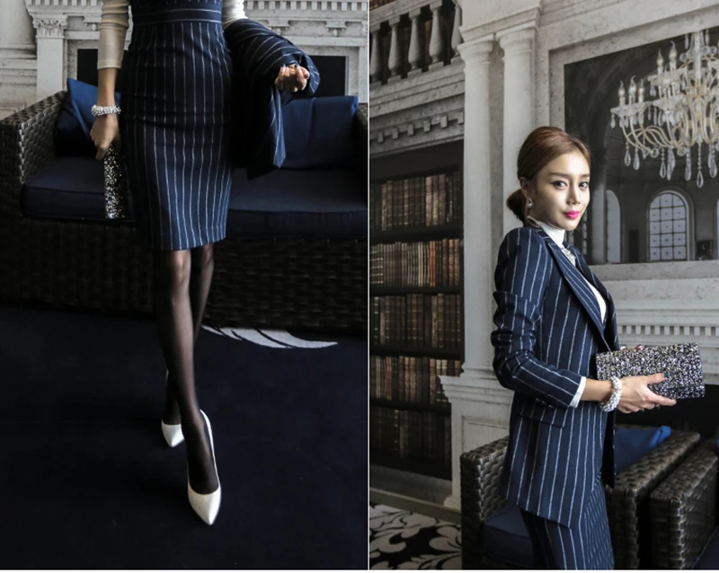 Rugod 2018 Autumn Suit Dress Office Women Jacket Blazer Dress Suits Female Long Sleeve Jacket+ Knee-Length Dress Office Clothes