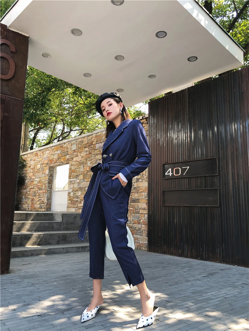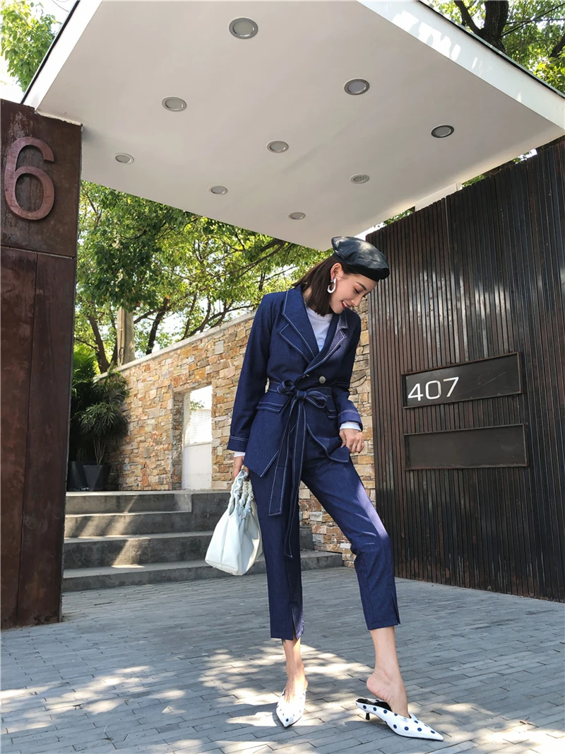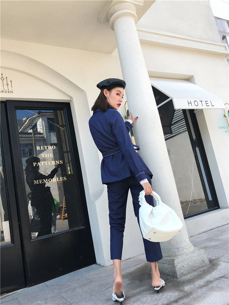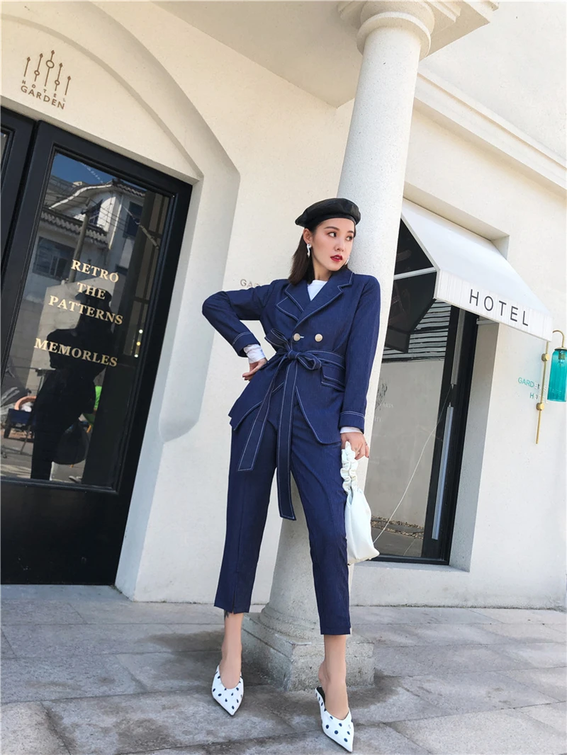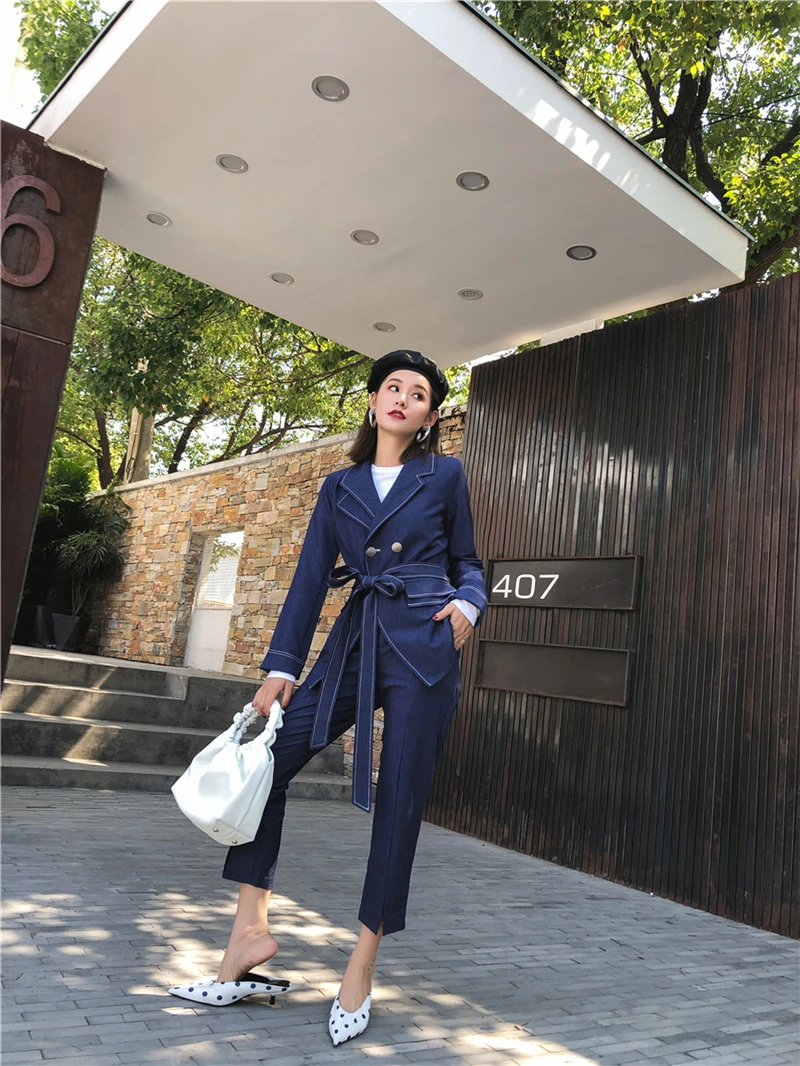 RUGOD 2018 New Office Lady Two Pieces Set Business Pants Suit Women Elegant Belted Blazer Jacket+Ankle Length Pants Tracksuits