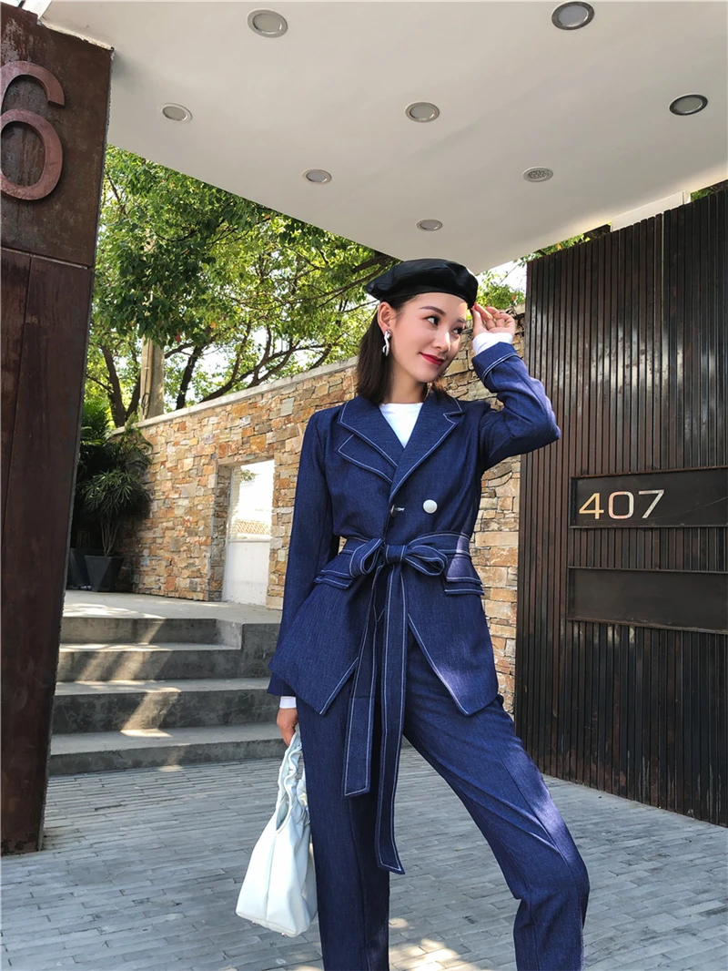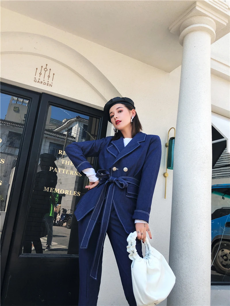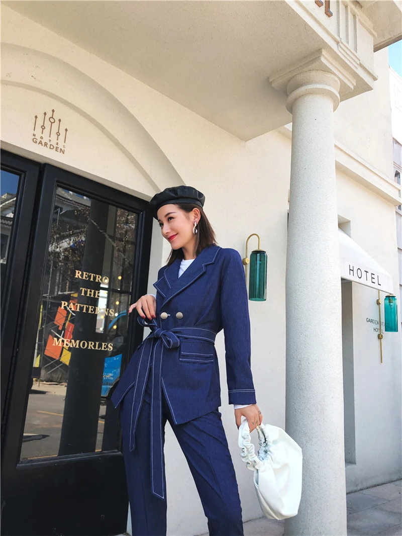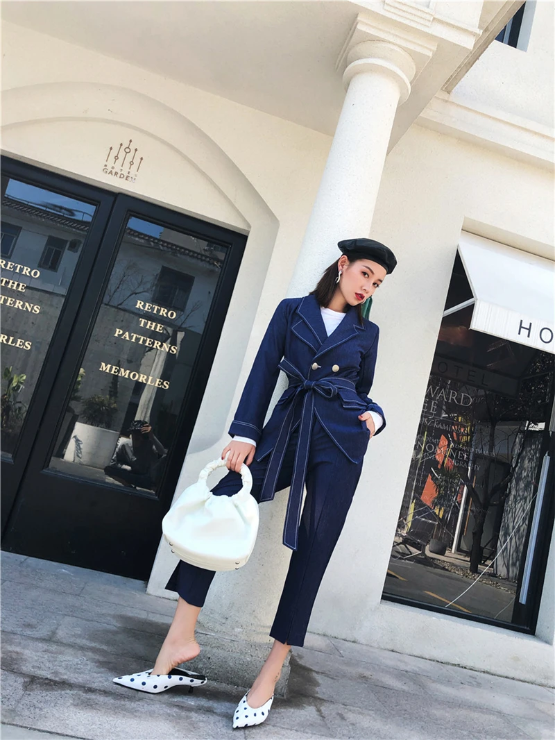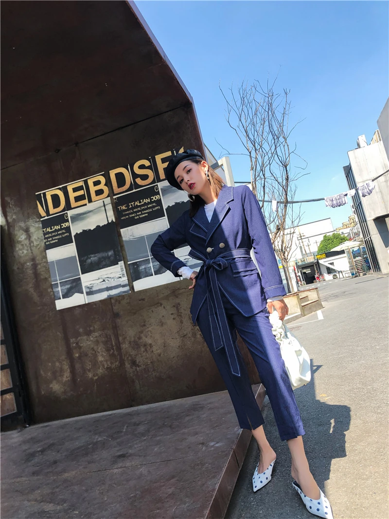 RUGOD 2018 New Office Lady Two Pieces Set Business Pants Suit Women Elegant Belted Blazer Jacket+Ankle Length Pants Tracksuits