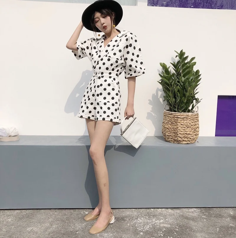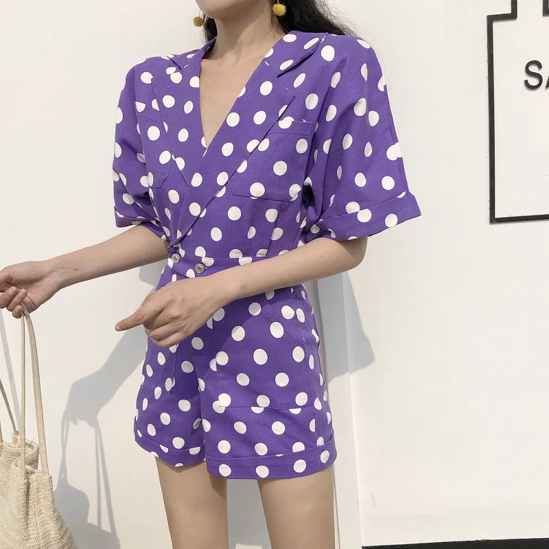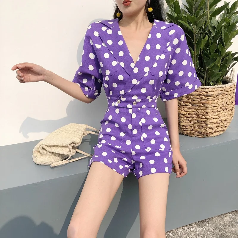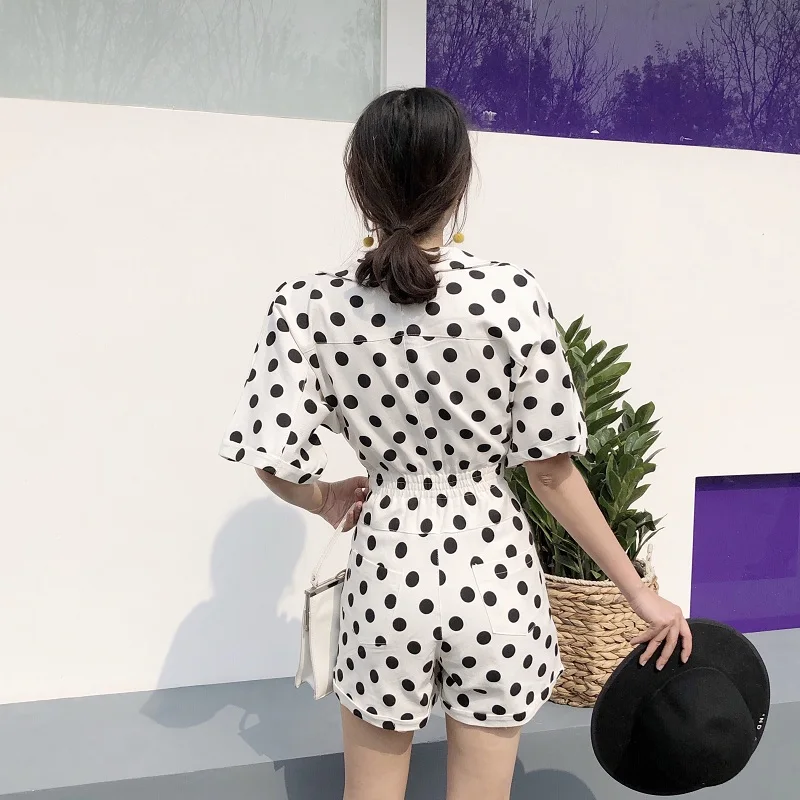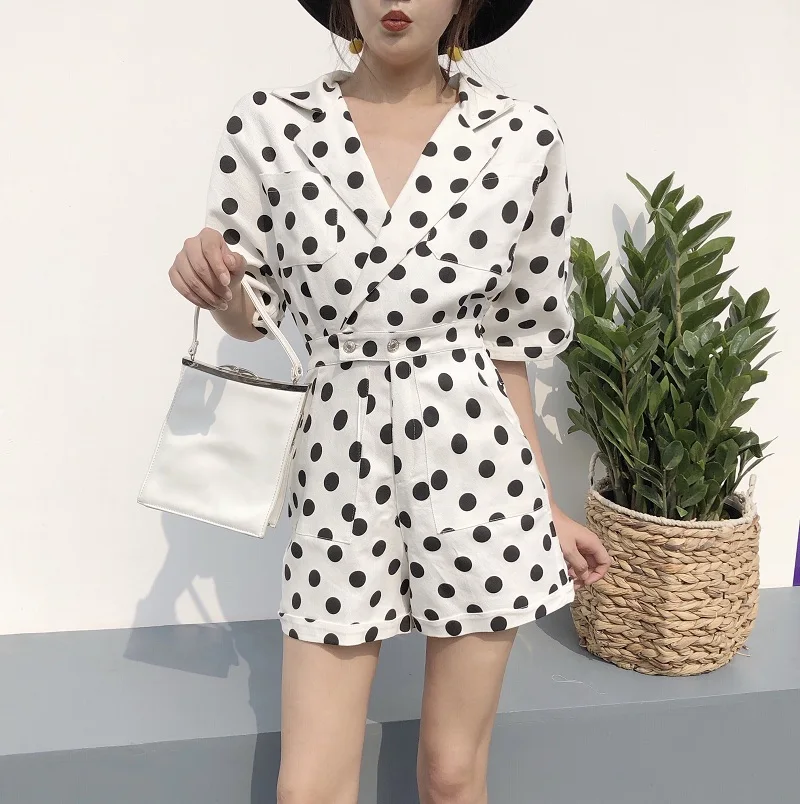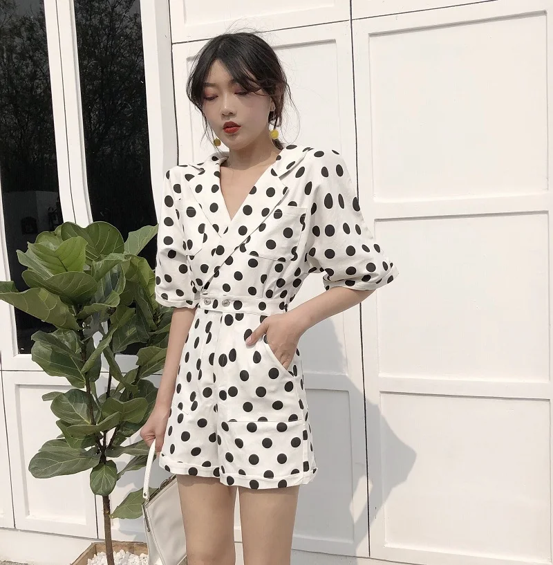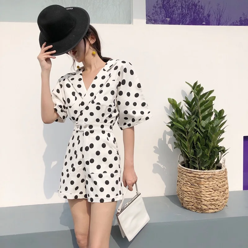 RUGOD 2018 New Summer Elegant Dot Print Playsuits Women Casual Lantern Sleeve V Neck Tunic Bodysuits Overalls Jumpsuit Femme