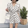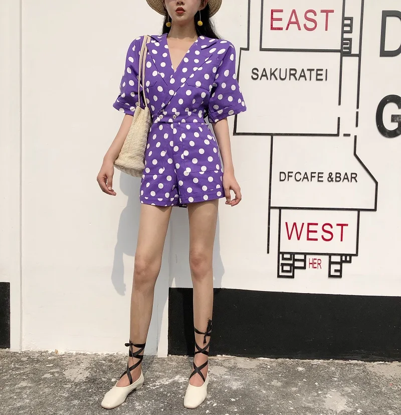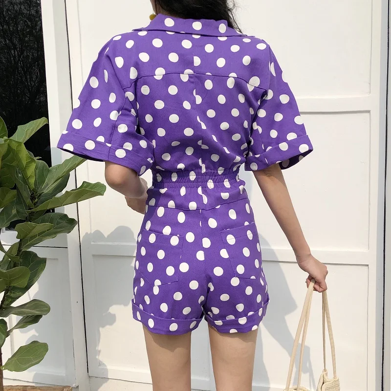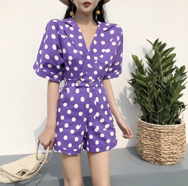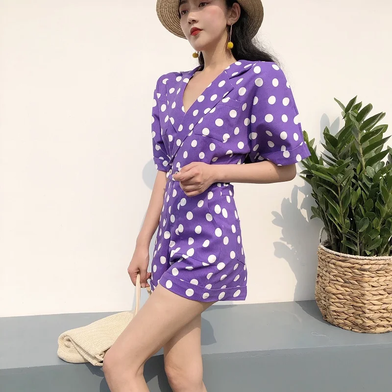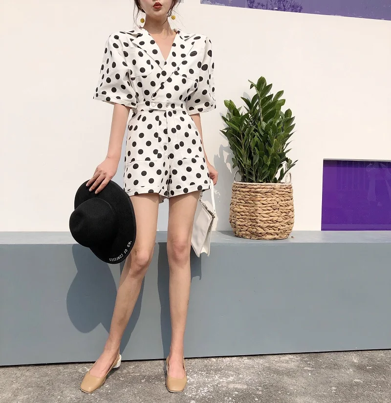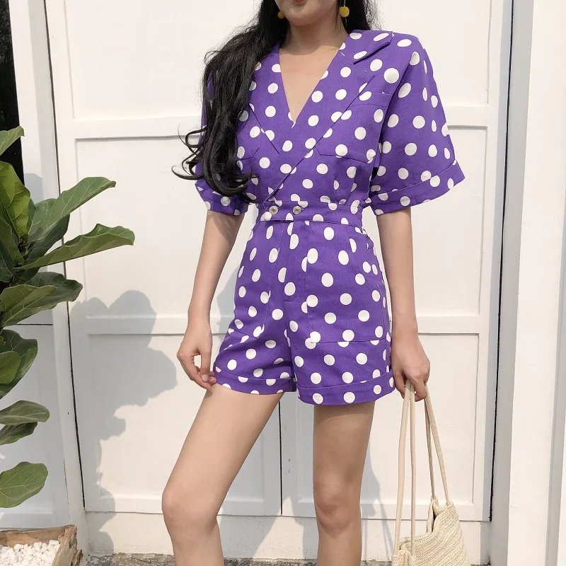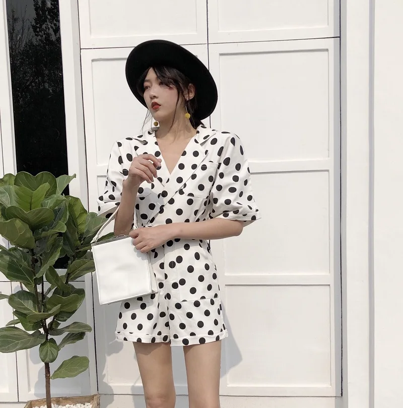 RUGOD 2018 New Summer Elegant Dot Print Playsuits Women Casual Lantern Sleeve V Neck Tunic Bodysuits Overalls Jumpsuit Femme