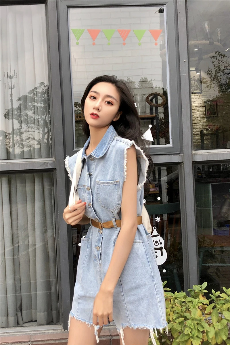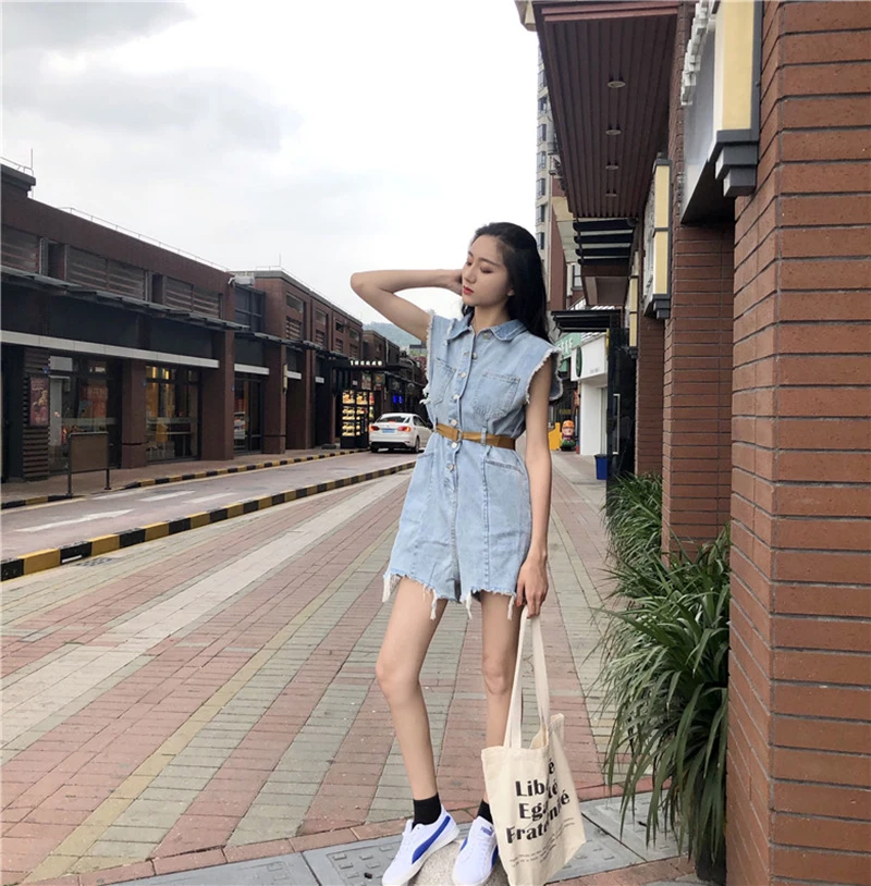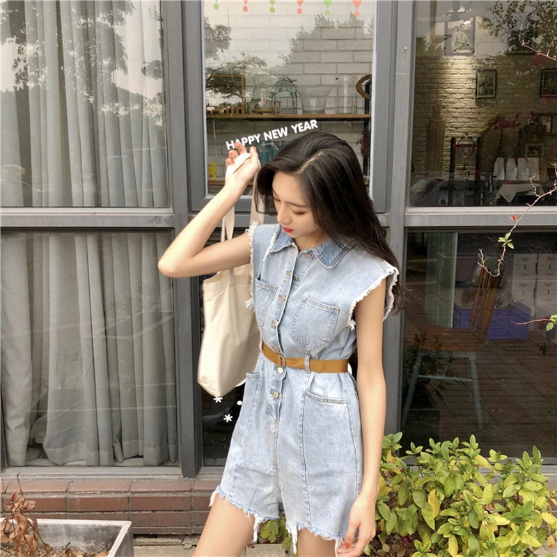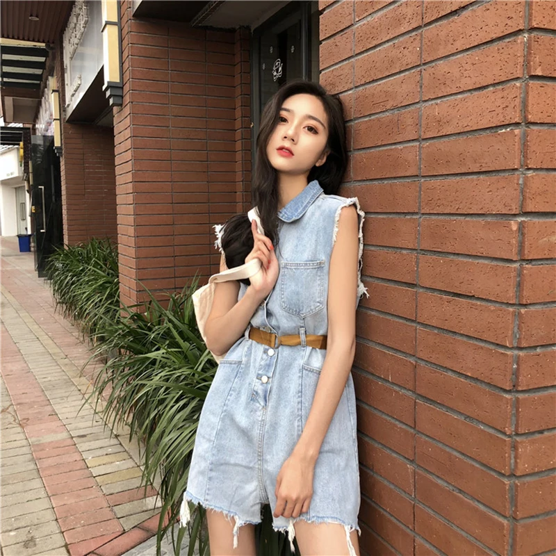 RUGOD 2018 Summer Vintage Belted Denim Jumpsuit Romper Women Casual Sleeveless Frayed Tassel Bodysuit Women Overalls Streetwear