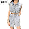RUGOD 2018 Summer Vintage Belted Denim Jumpsuit Romper Women Casual Sleeveless Frayed Tassel Bodysuit Women Overalls Streetwear