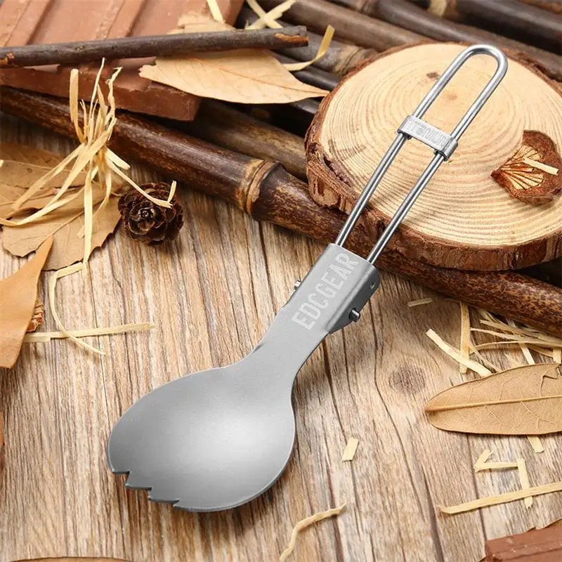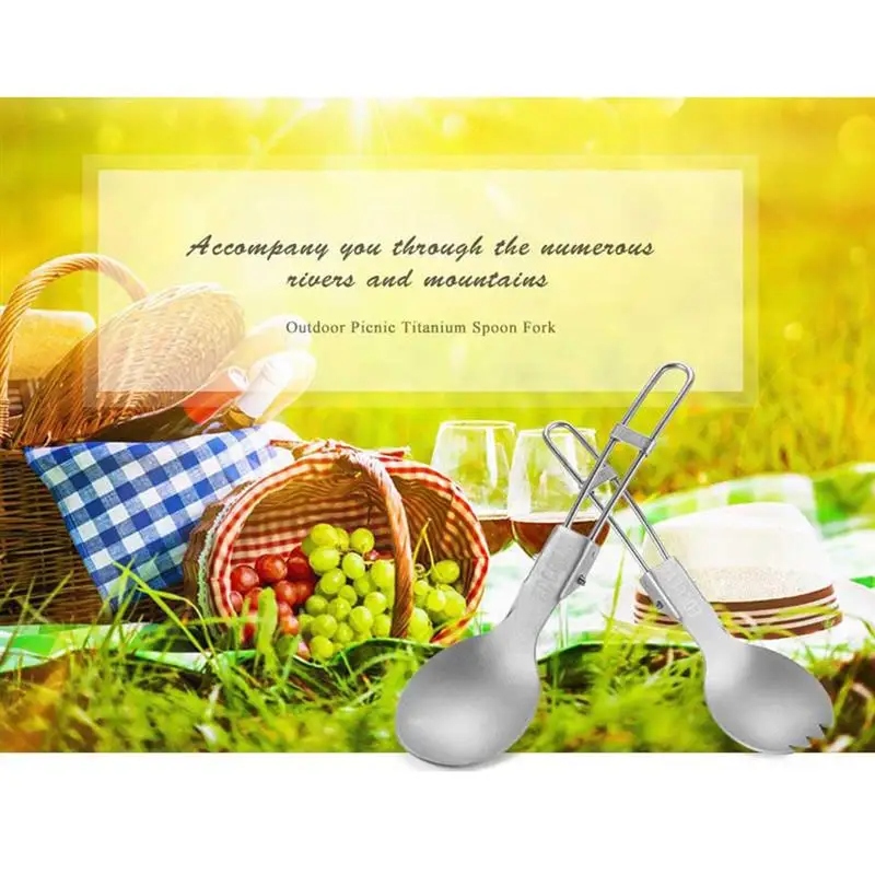 RUNACC Folding Titanium Spork Portable Camping Spoon Fork Outdoor Picnic Sporks Suitable for Traveling Hiking and Camping