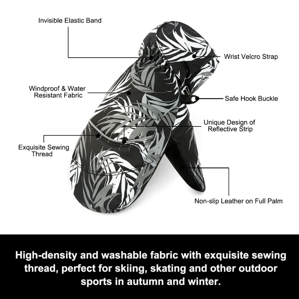 This pair of ski gloves has elastic wrist strap and adjustable self-adhesive strap, which not only allows your kid to adjust the tightness for tight and snug fit, but also is convenient to put on or take off. Besides, non-slip and abrasion-resistant PU leather on full palm makes your kid feel flexible and convenient to grip objects.