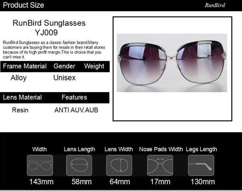 RunBird Fashion Sunglasses Women D Frame Popular Luxury Brand Designer Shades Sun Glasses Infantil Oculos De Sol Feminino R547