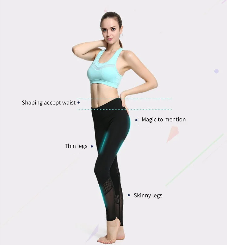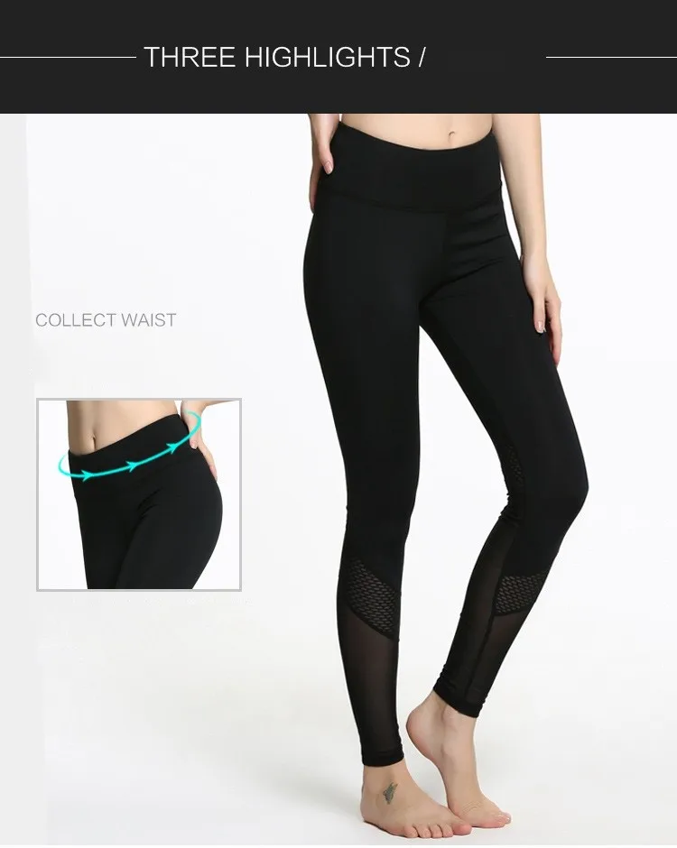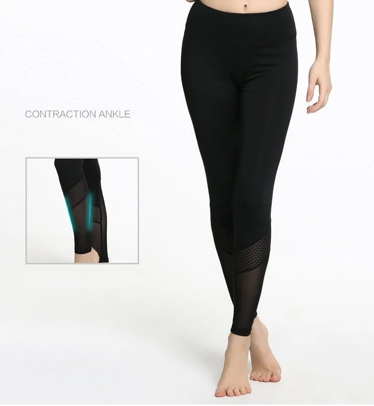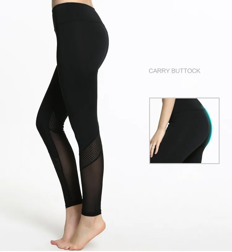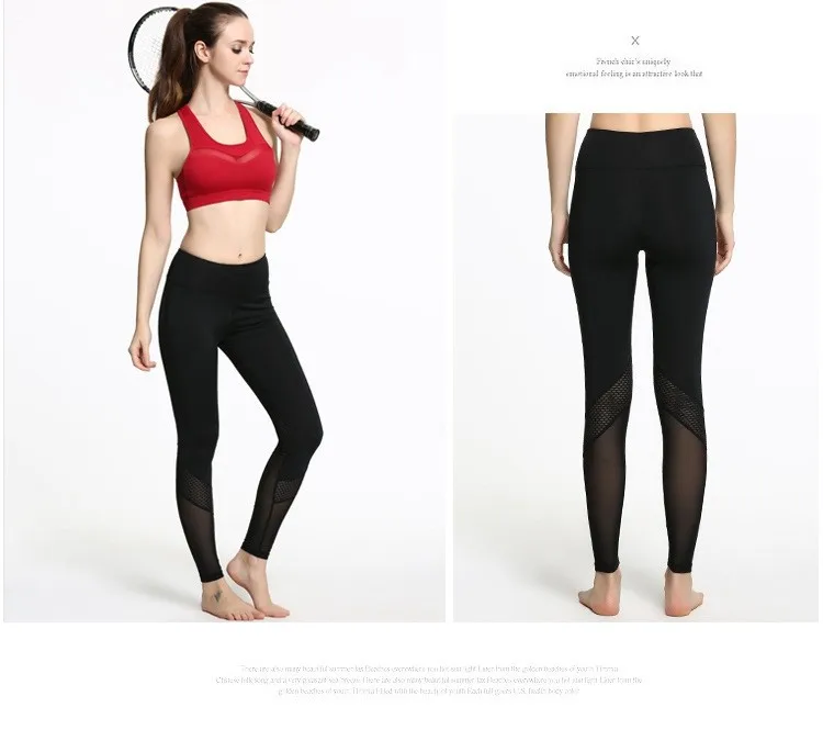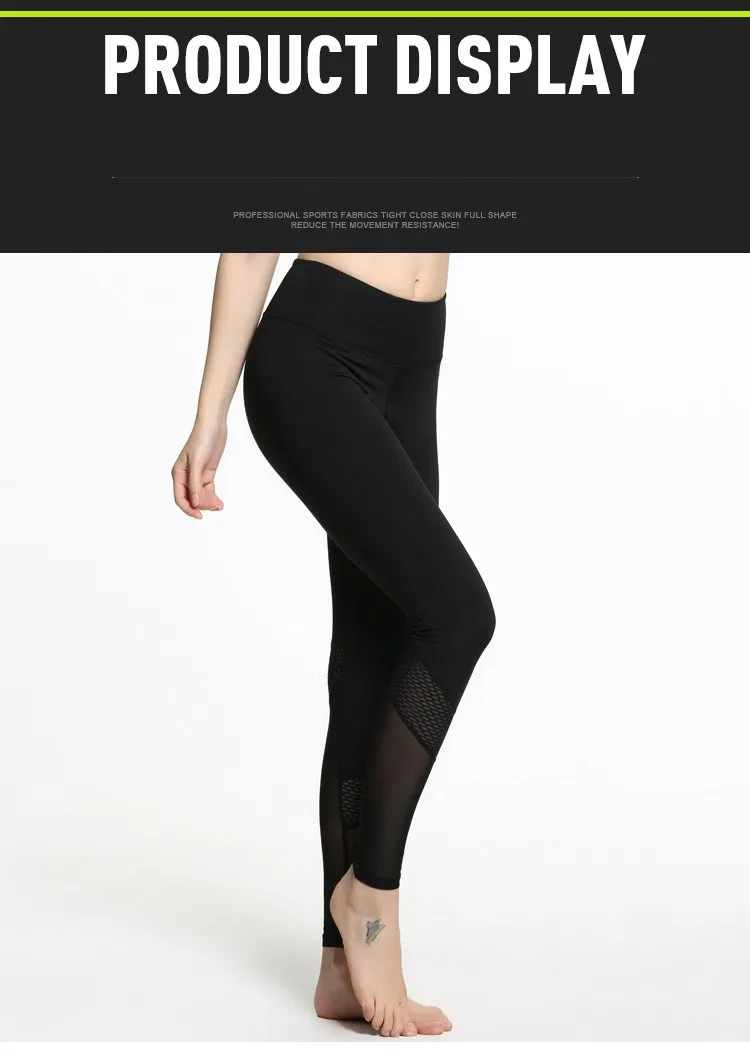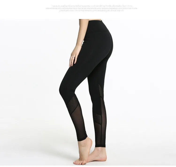 Sexy Yoga Pants Mesh Women Leggings Trouser Elastic Polyester Spandex Tight Sport Fitness Run Gym High Waist Fitness Compression