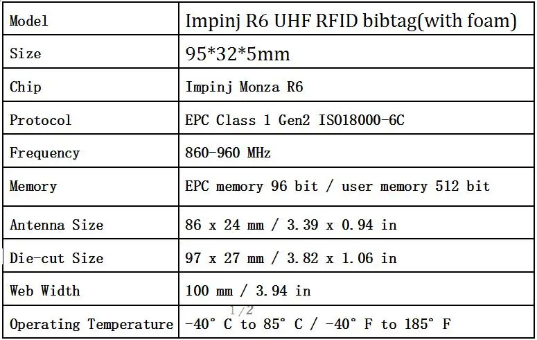 1, Original Impinj Monza RFID uhf rfid wet inlay sticker with foam (bib-tag)