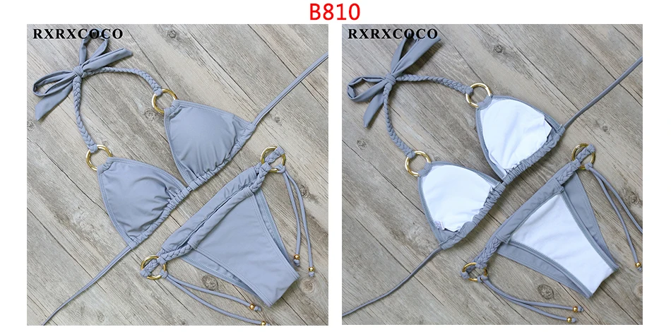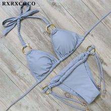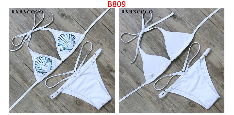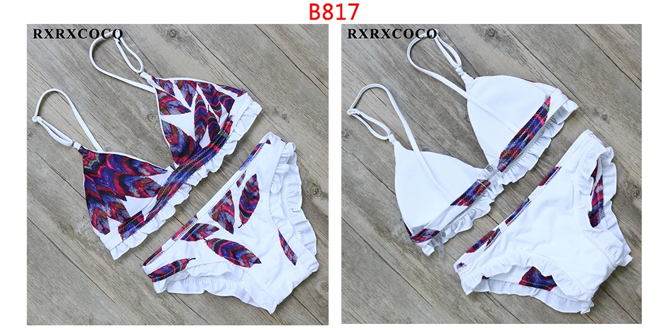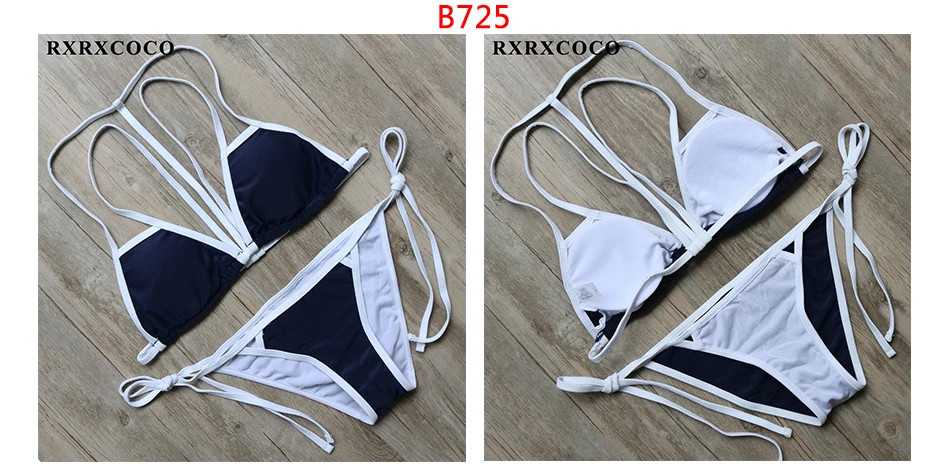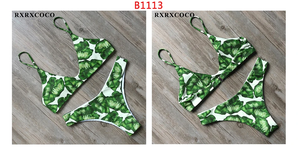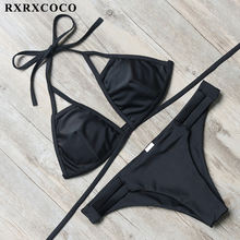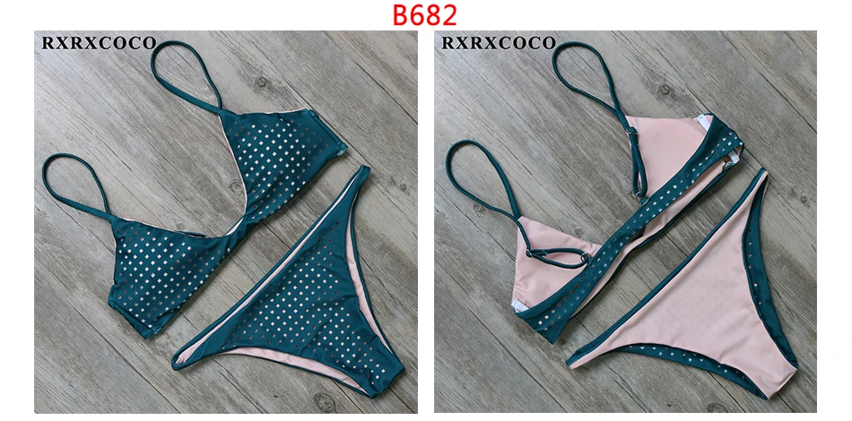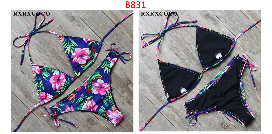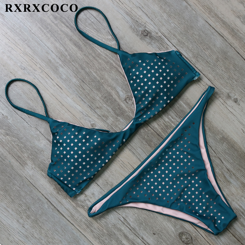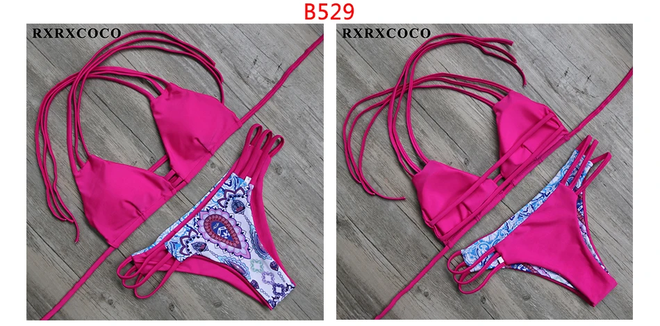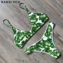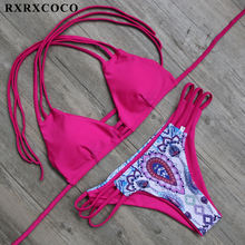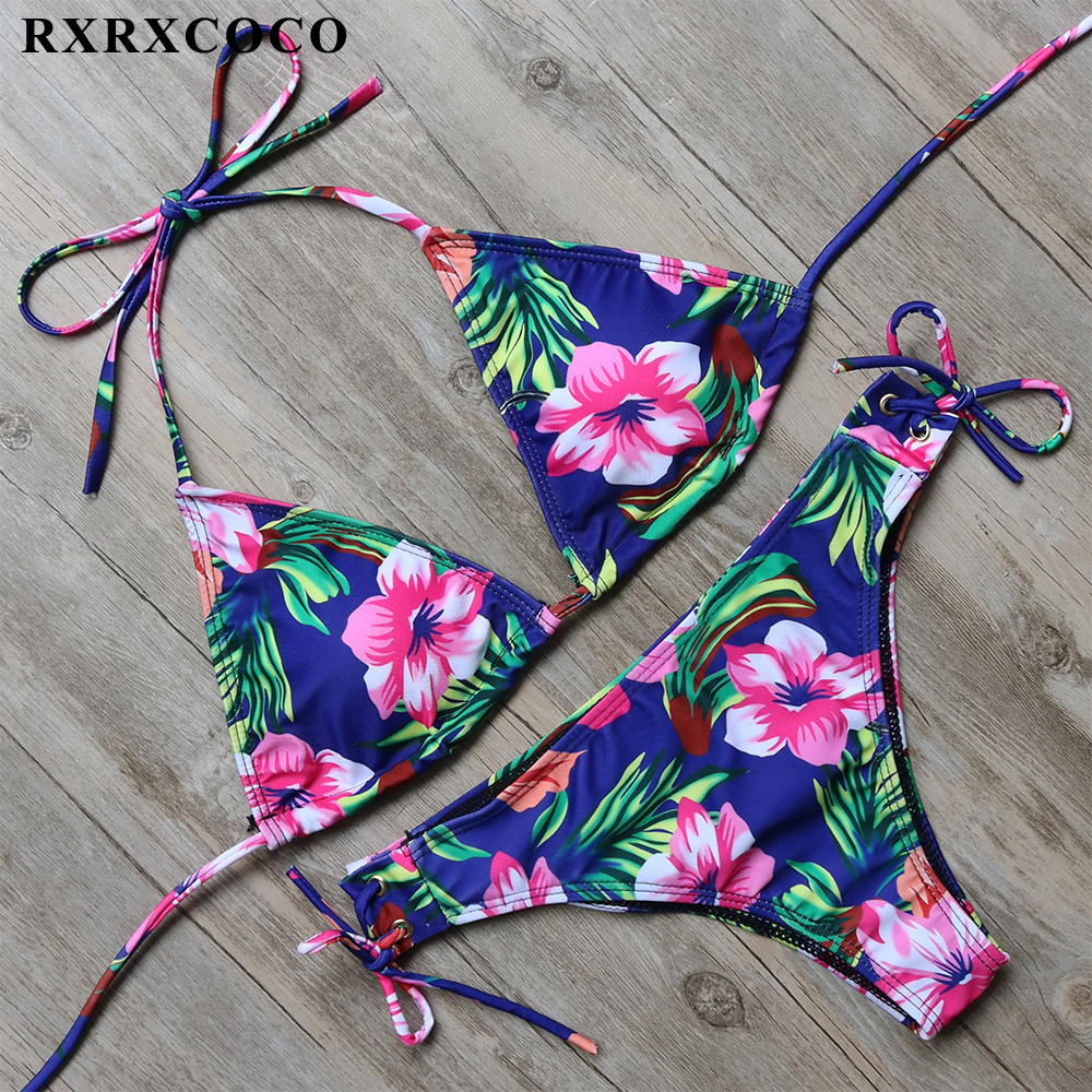 RXRXCOCO Bandage Bikini 2018 Printed Swimwear Women Swimsuit Solid Hollow Out Bathing Suit Low Waist Bikini Padded Push Up Badpa