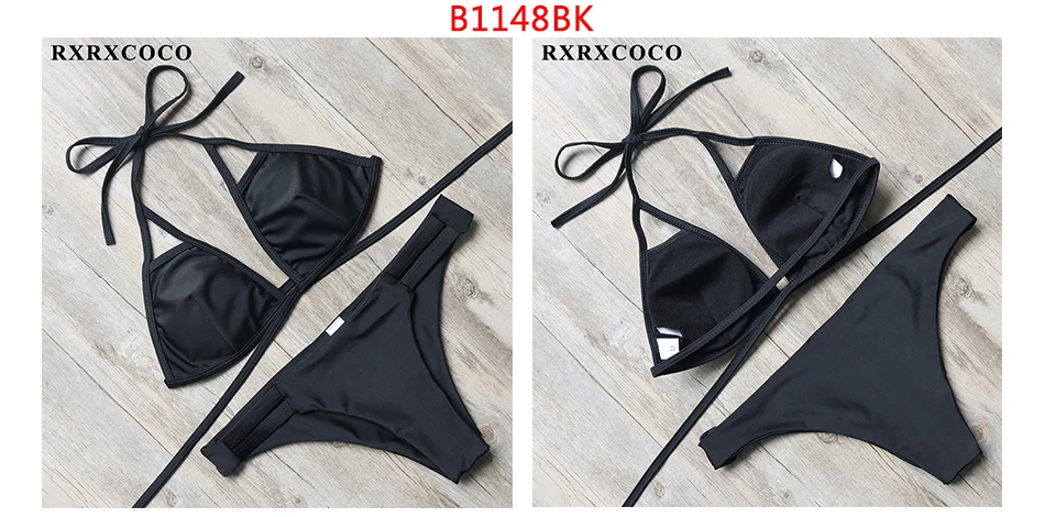 RXRXCOCO Bandage Bikini 2018 Printed Swimwear Women Swimsuit Solid Hollow Out Bathing Suit Low Waist Bikini Padded Push Up Badpa