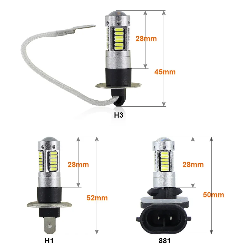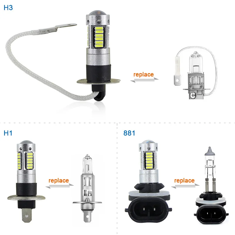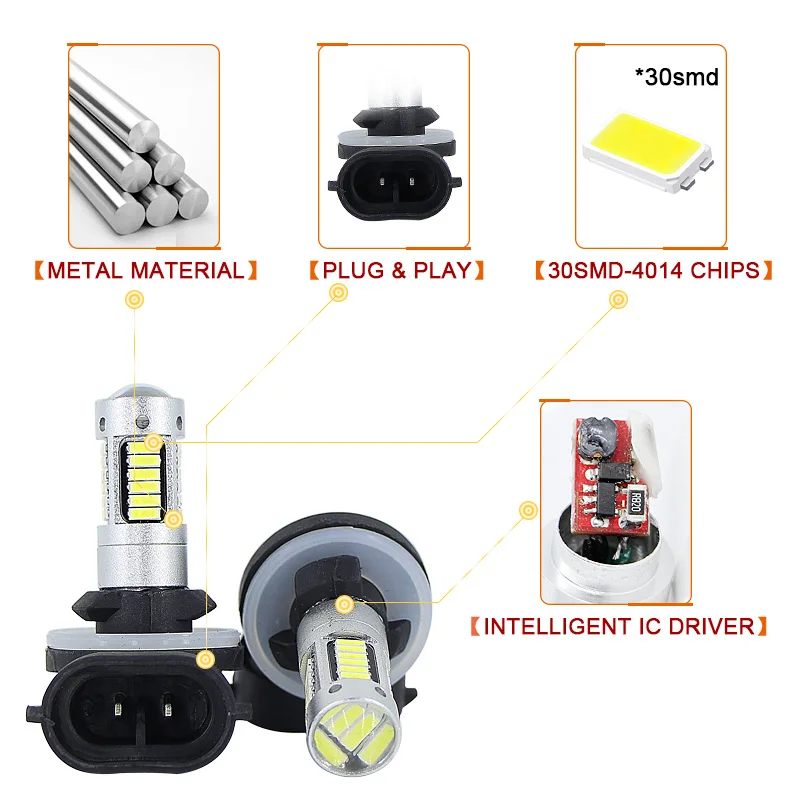 SAARMAT 2* High Power 6000K White 30-SMD 4014 881 889 H27 H1 H3 LED Replacement Bulbs For Car Fog Daytime Runng Lights DRL Lamps