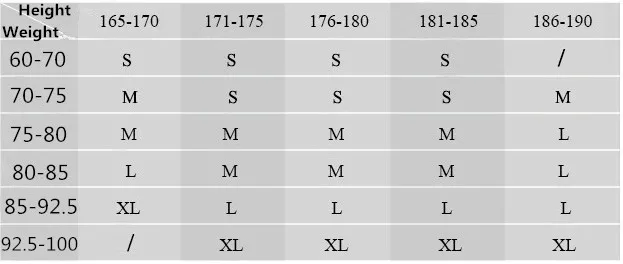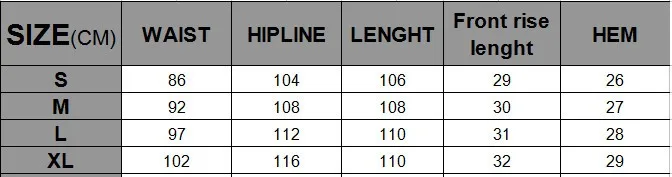 MEN’S PANT SIZE CHART: