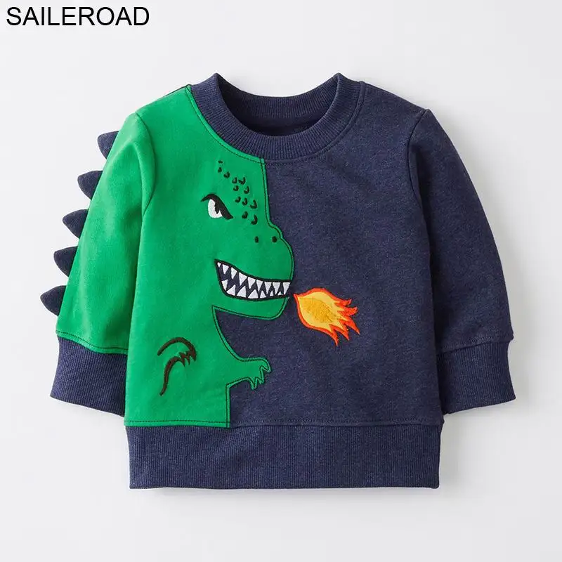 SAILEROAD 2-7Years Sweatshirt for Kids Cartoon Dinosaur Warm Sweatshirt for Children Long Sleeve T Shirts Autumn Boys Clothes