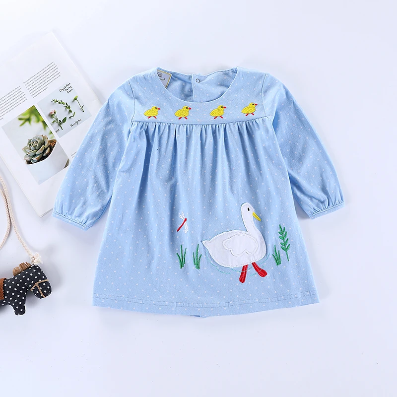 SAILEROAD Girls Long Sleeve Dress Cartoon Duck Embroidery Toddler Girls Tops Shirts Dress for 6Years Kids Vestido Dresses
