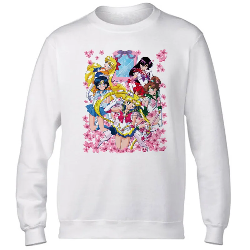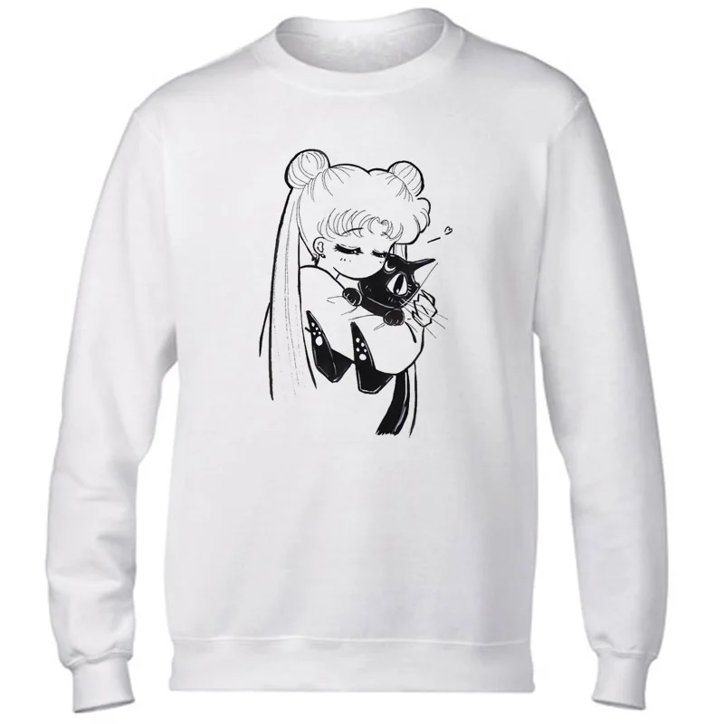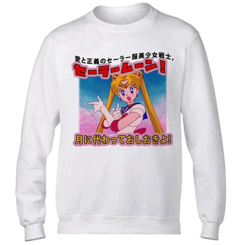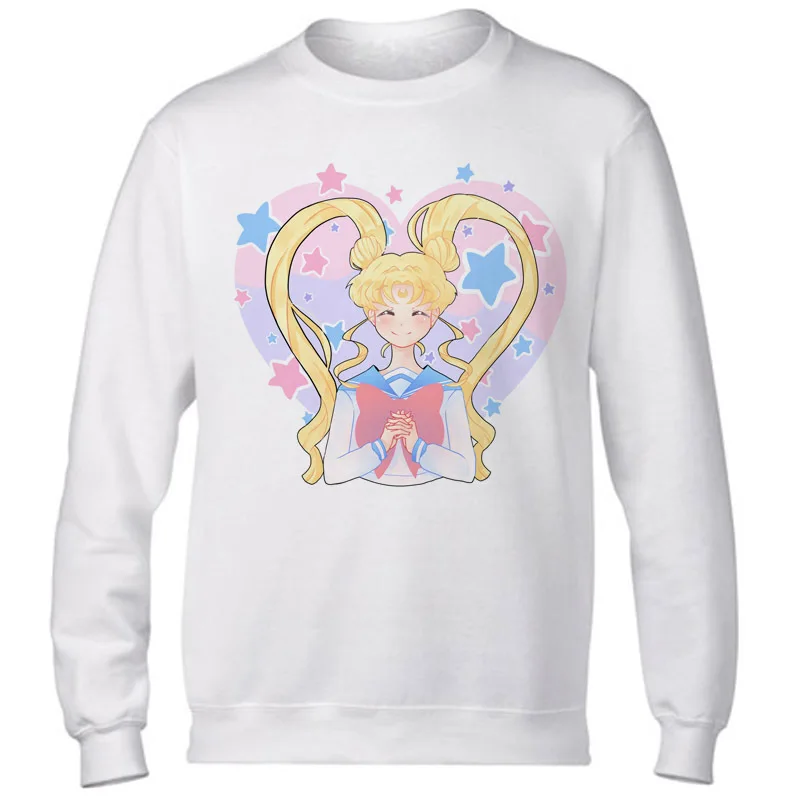 sailor moon 2017 Casual tumblr Sweatshirt Print Sweatshirts Long Sleeve Hoody O-Neck KAWAII White CUTE Hoodies Pullovers