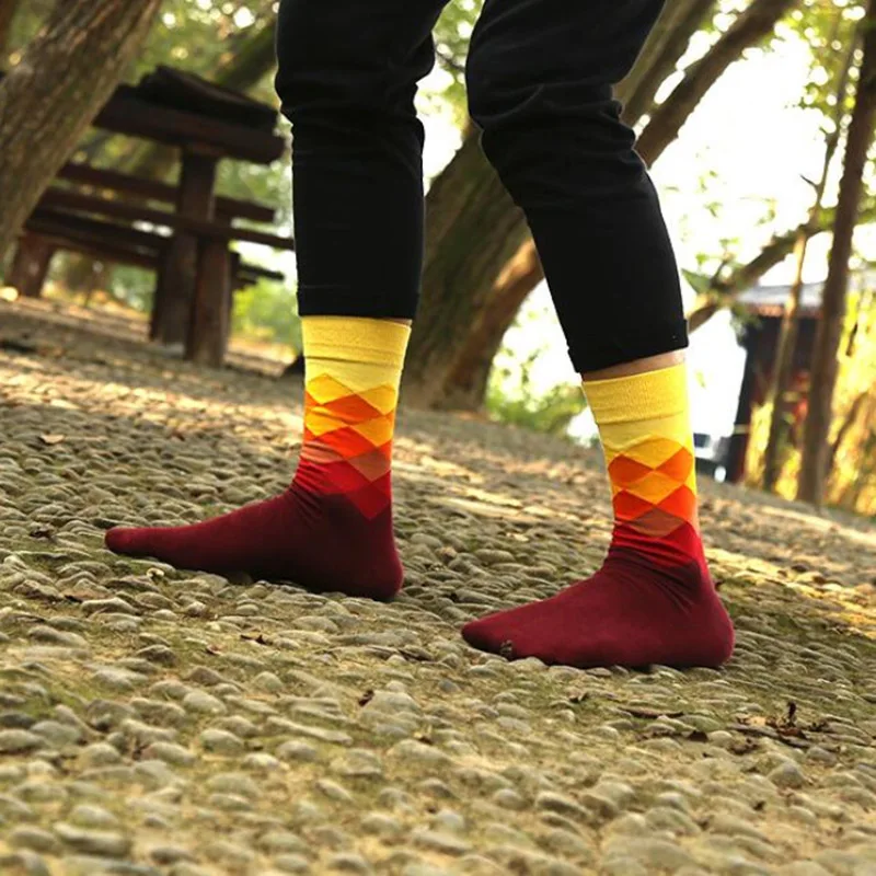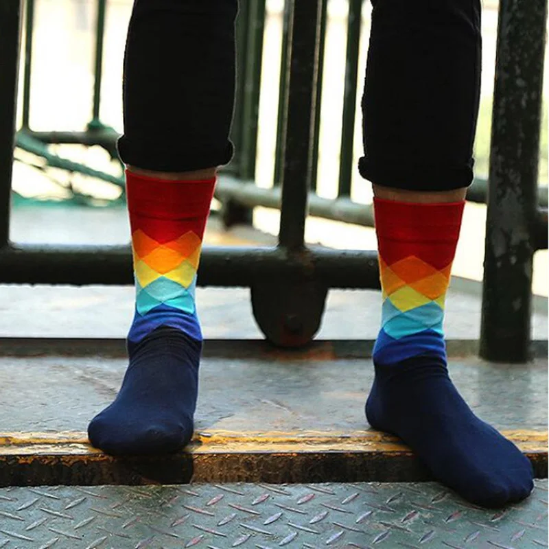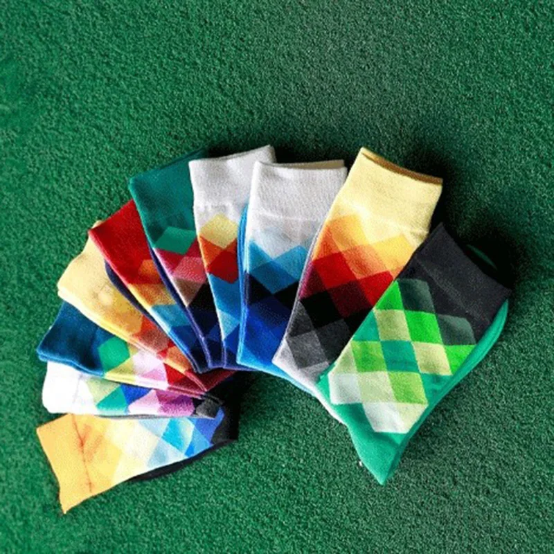 Sale 1 Pair One Size 10 Colors British style Fashion Hot Elegant Plaid Gradient Color Men Sock