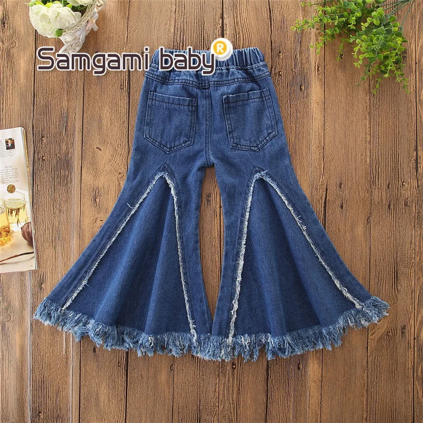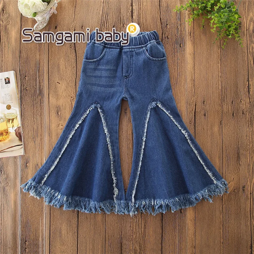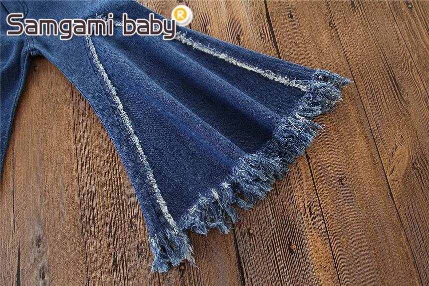 SAMGAMI BABY Toddler Girls Summer European Style Denim Pants Fashion Flared Trousers Elastic Waist Jeans Boutique Kids Clothing