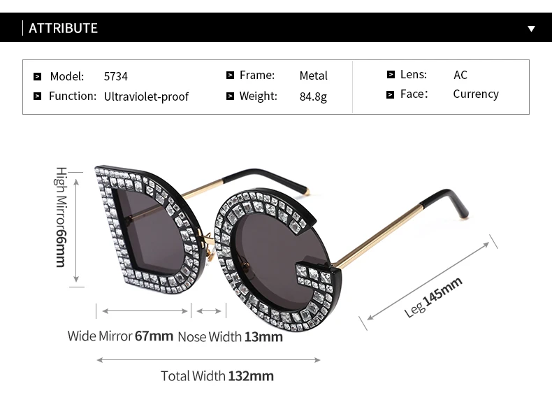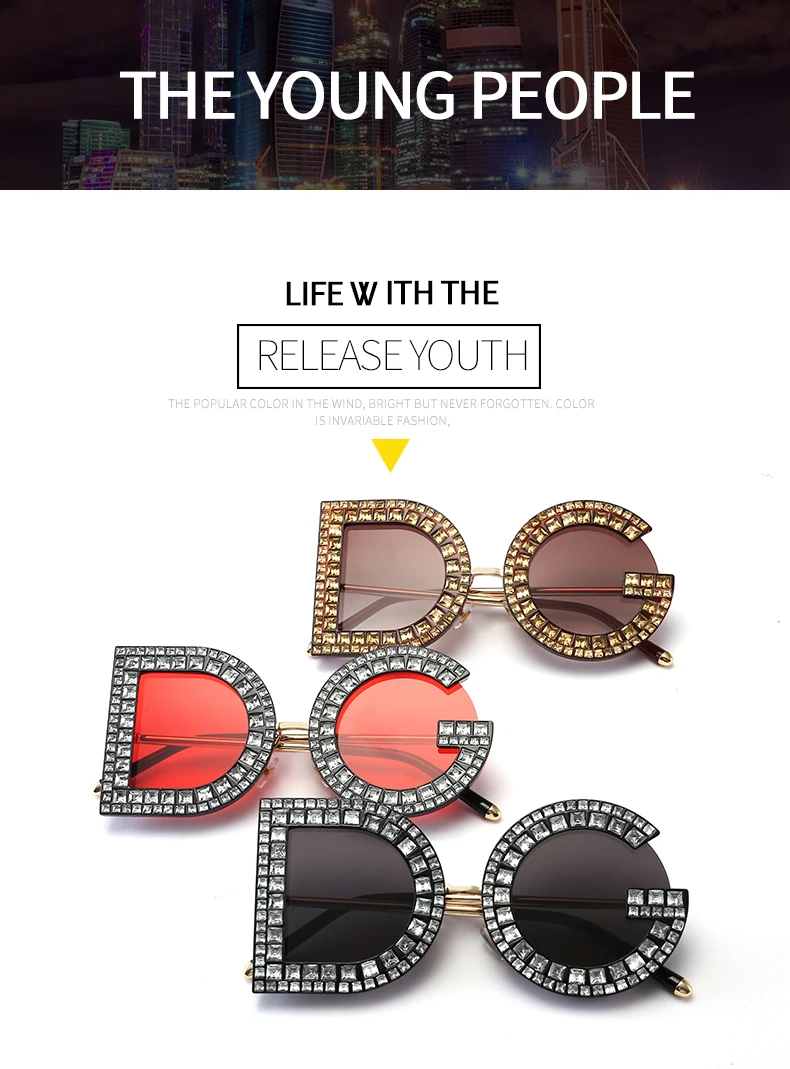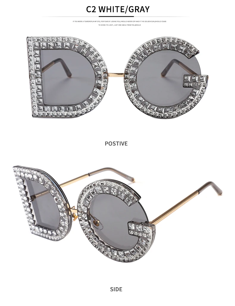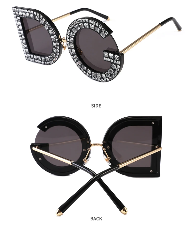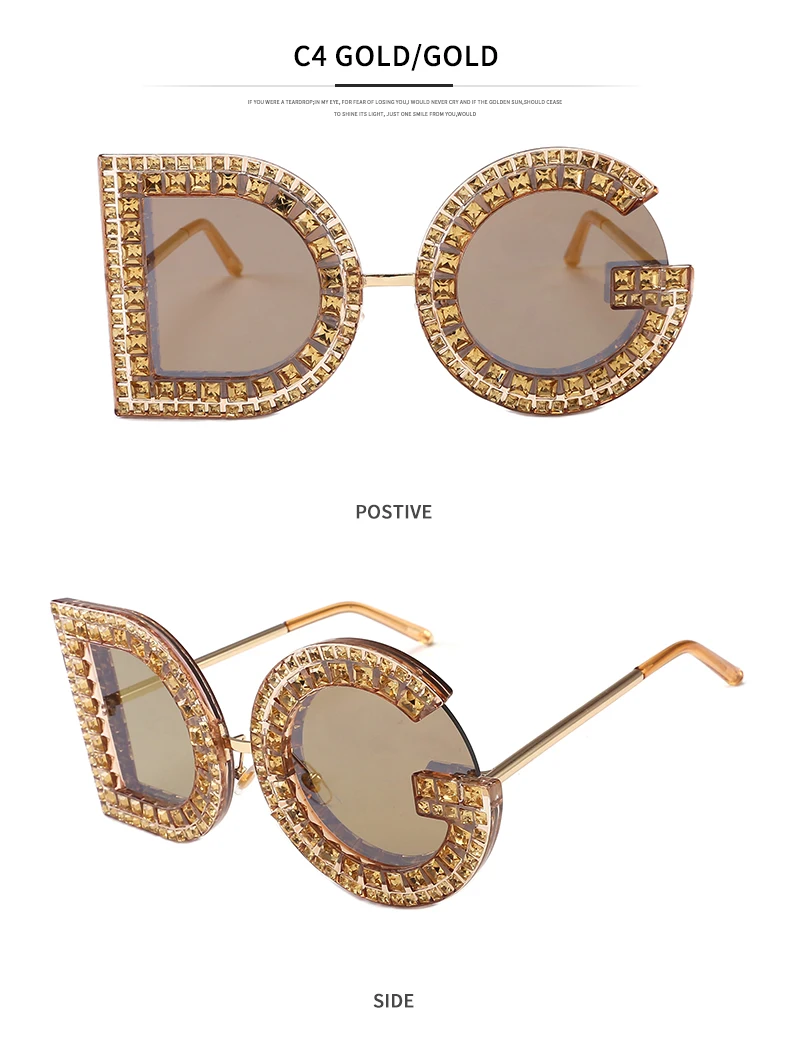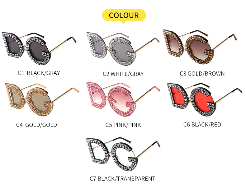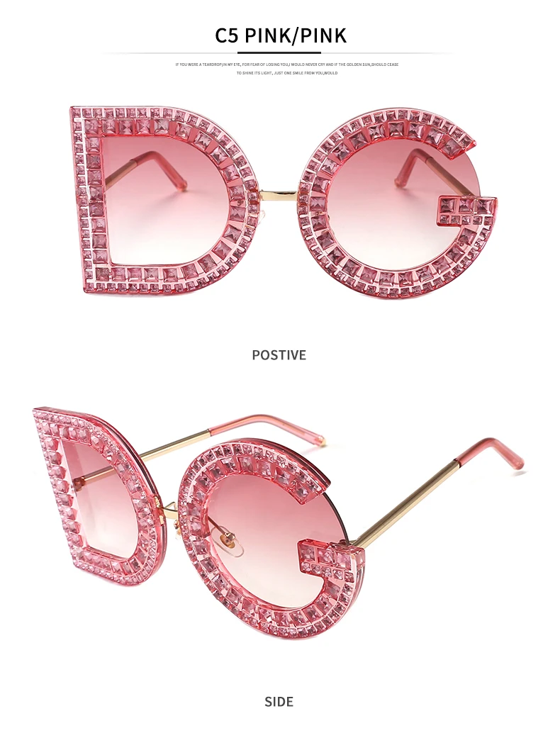 Samjune D and G Round Sunglasses 2018 New Women Square Luxury Brand Crystal Sun glasses Ladies Red Yellow Pink Bling Gemstone DG