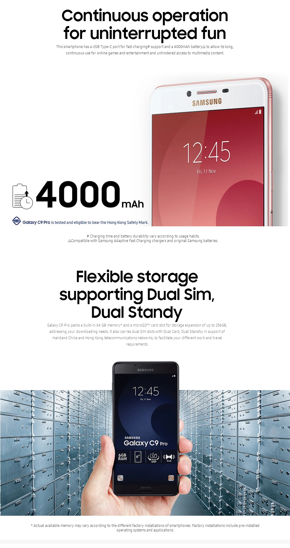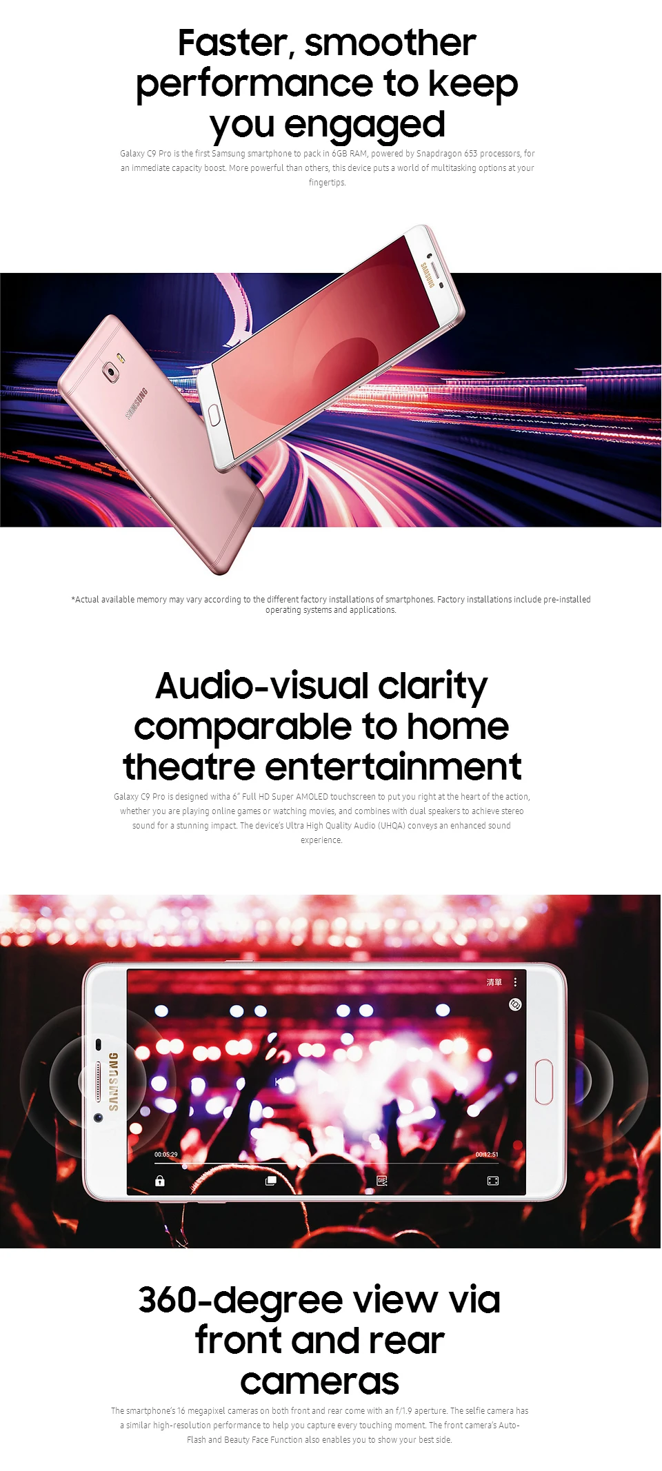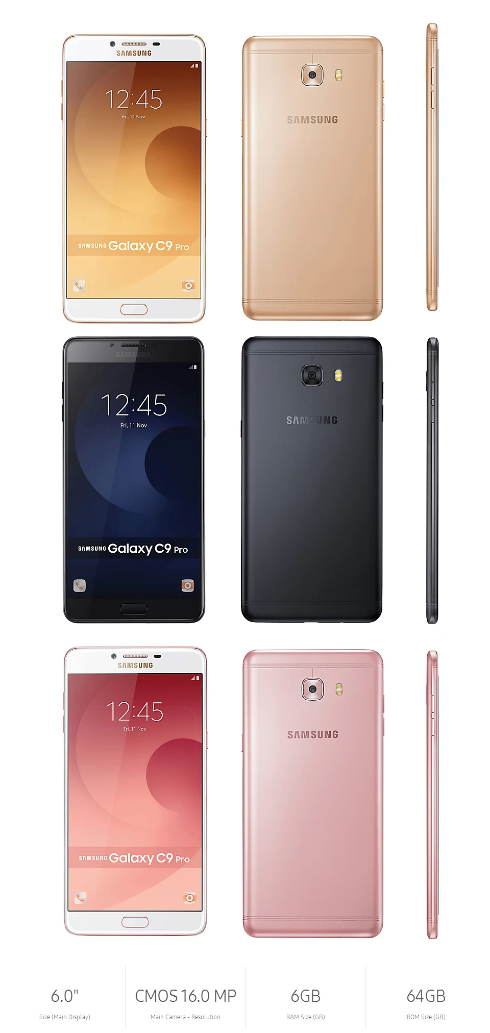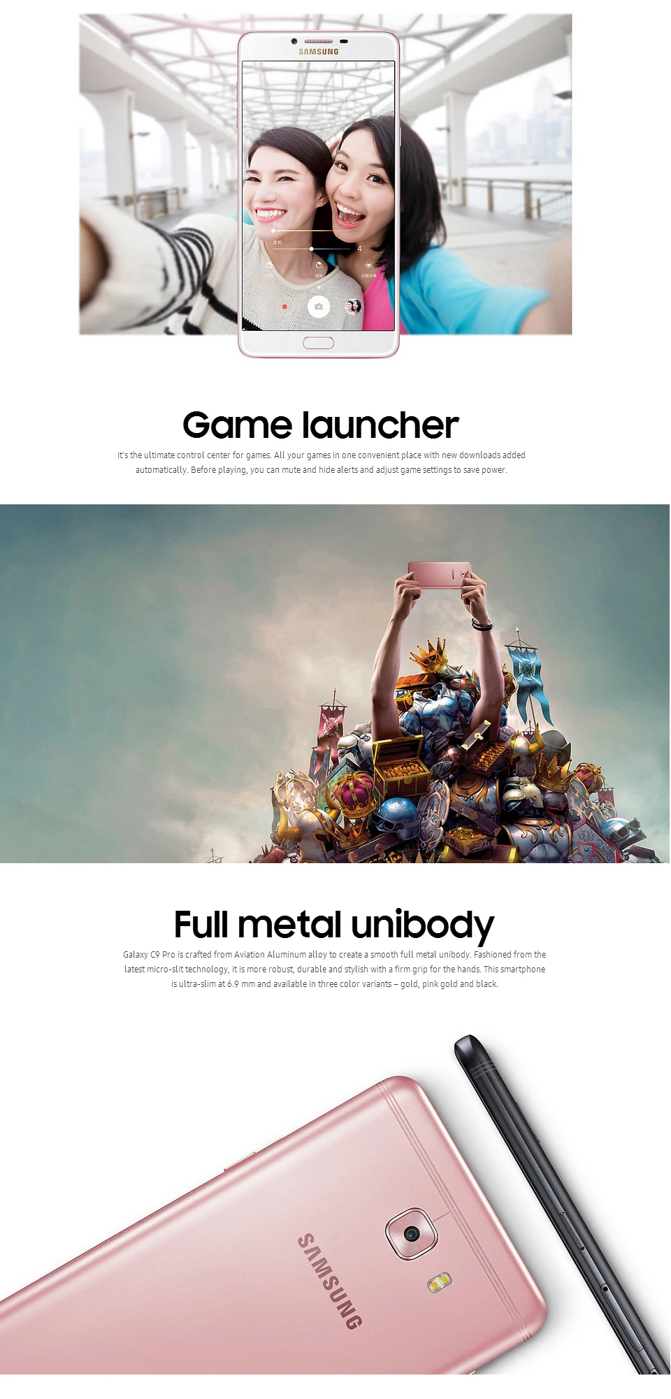 Samsung Galaxy C9 Pro C9000 cellphone 6.0” FHD Super AMOLED Snapdragon 653 Octa core 6GB + 64GB 16.0MP 4000mAh NFC Smartphone