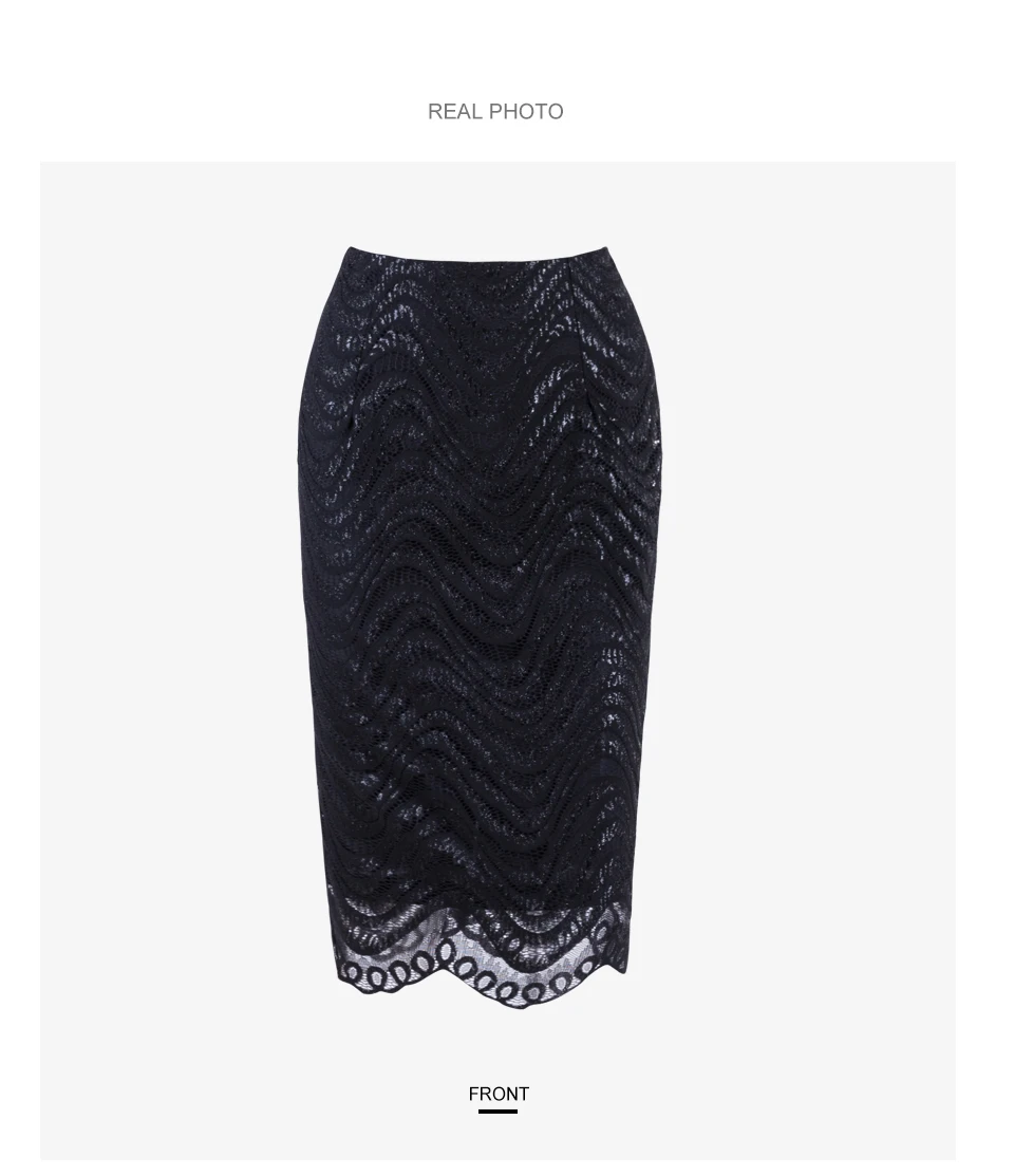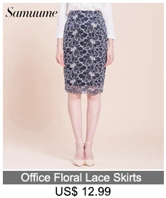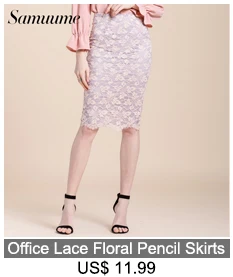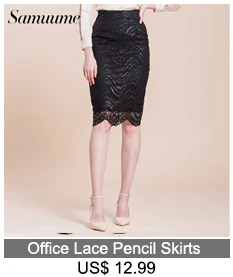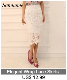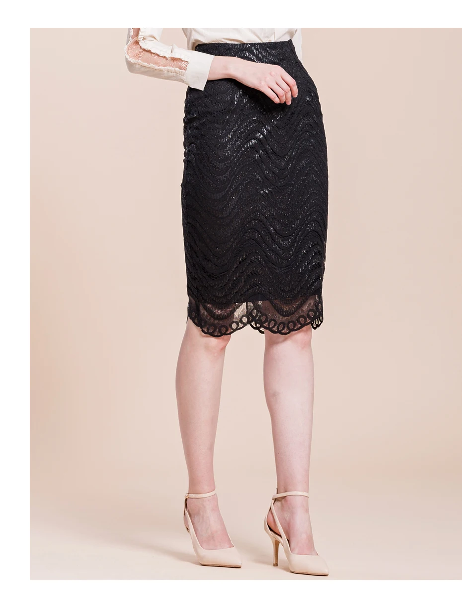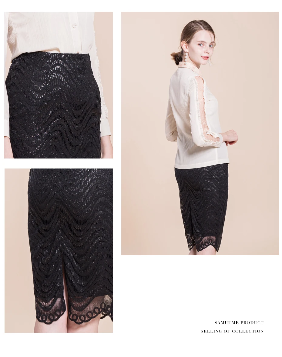 Samuume High Waist Bodycon Skirt 2018 New Arrival Elegant Wave Lace Skirts Office Black Pencil Midi Skirts Faldas Mujer A1708071