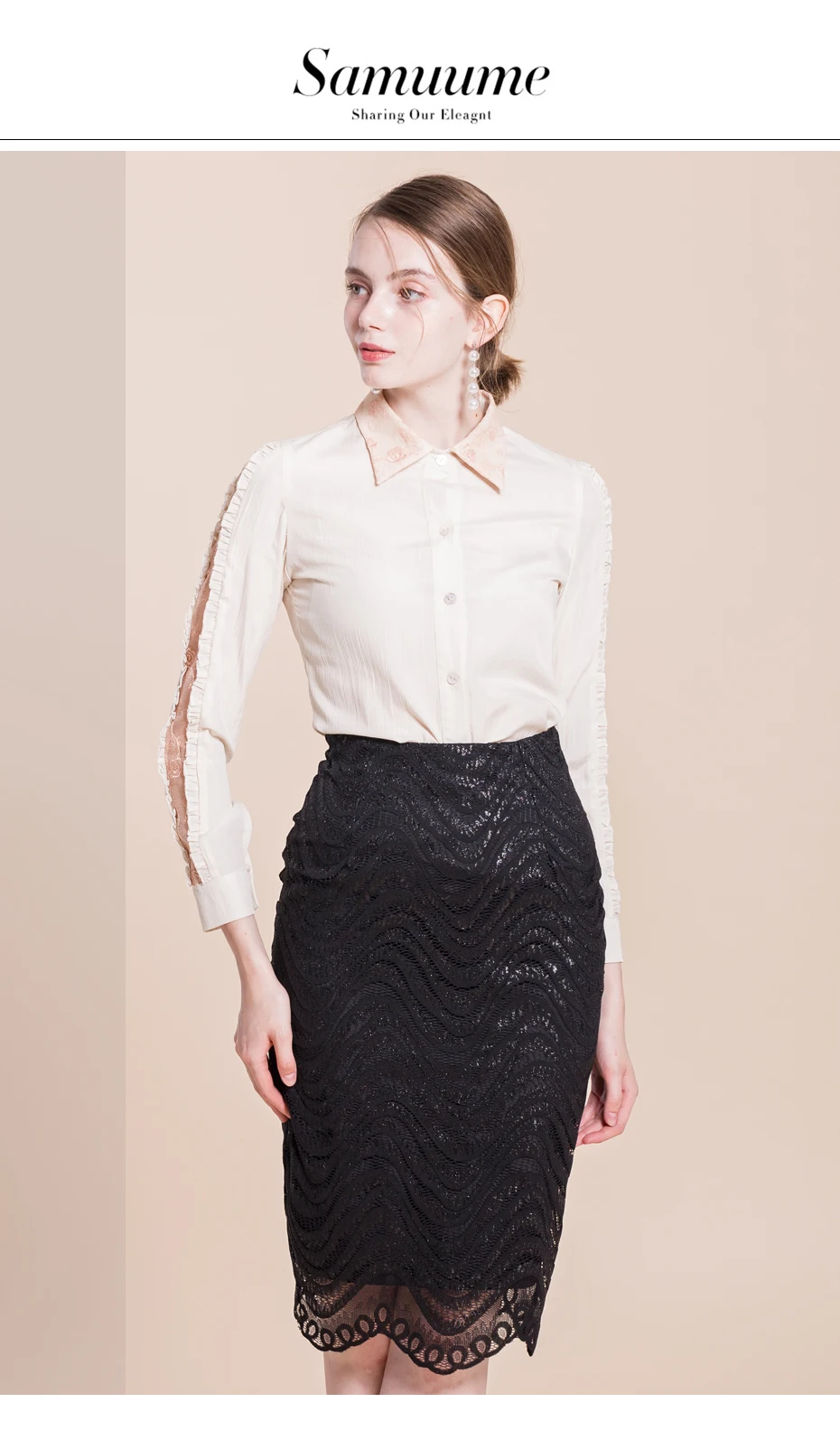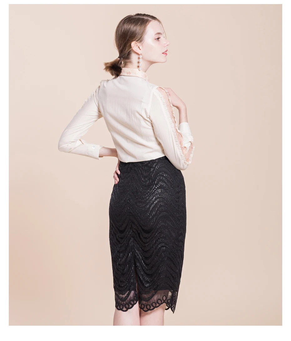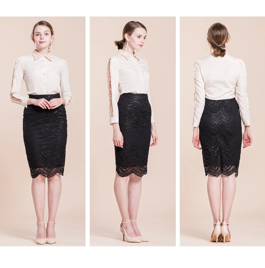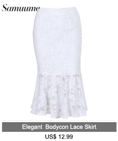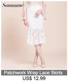 Samuume High Waist Bodycon Skirt 2018 New Arrival Elegant Wave Lace Skirts Office Black Pencil Midi Skirts Faldas Mujer A1708071