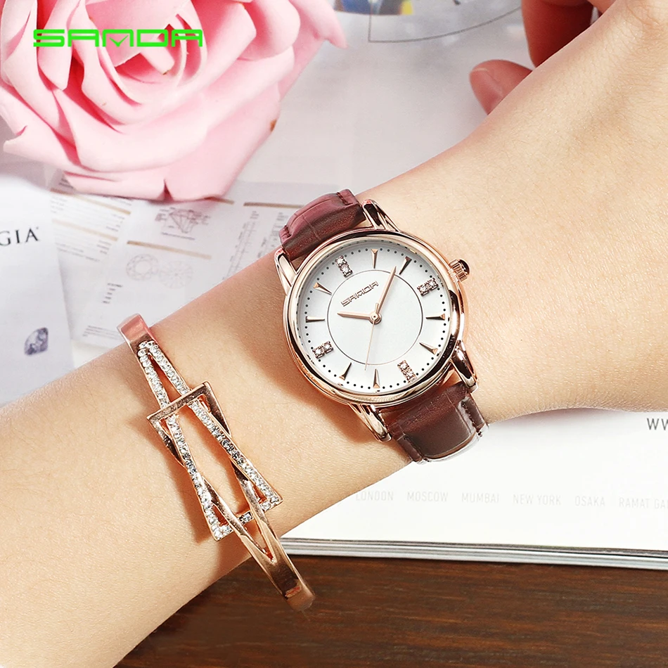 SANDA 2018 Leather Women Watches Ladies Luxury Brand Famous Wrist Watch Fashion Dress Female Clock Relogio Feminino Montre Femme